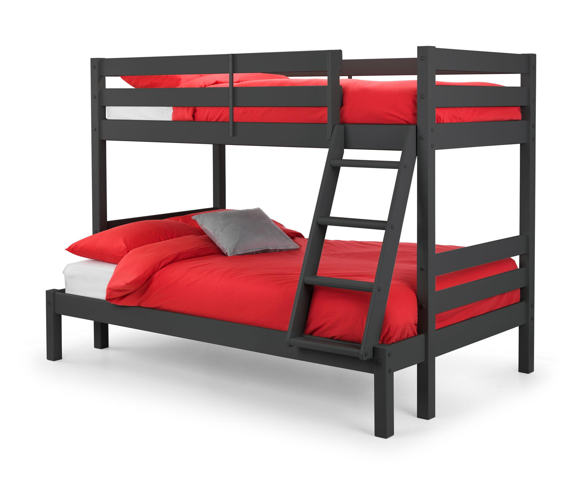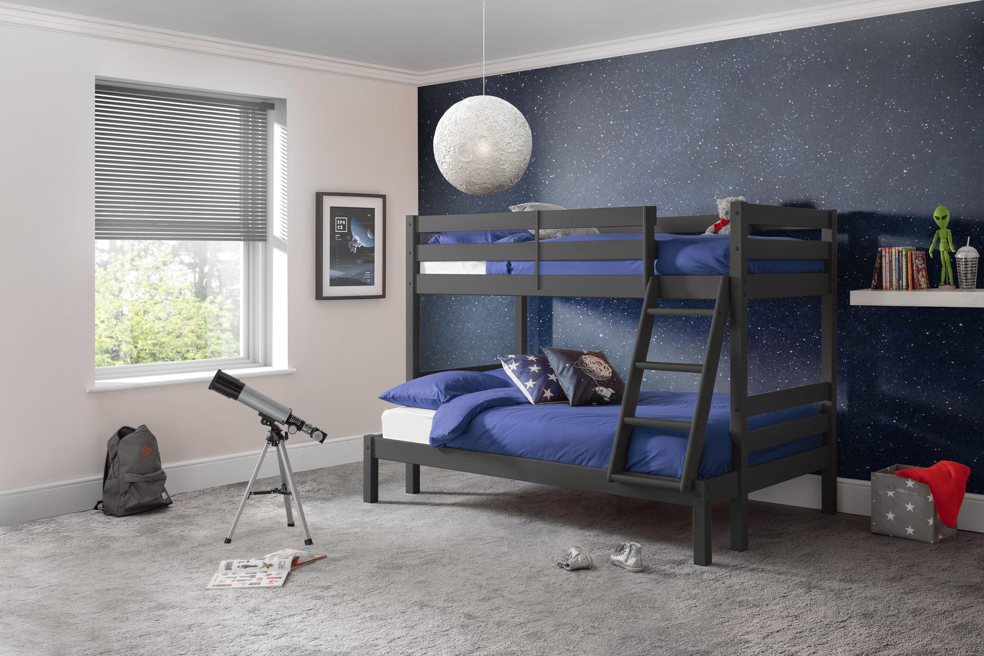 Experience the perfect blend of style and functionality with the Merlin Triple Sleeper. Finished in anthracite, this bunk bed boasts a sturdy frame that adds a touch of elegance to any bedroom. The top bunk, ideal for a single mattress, offers a cosy elevated space, while the spacious bottom bunk accommodates a small double mattress, giving you plenty of room to stretch out and relax. Mattress sold separately.