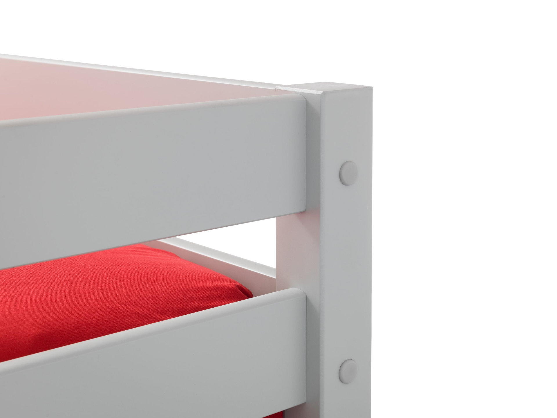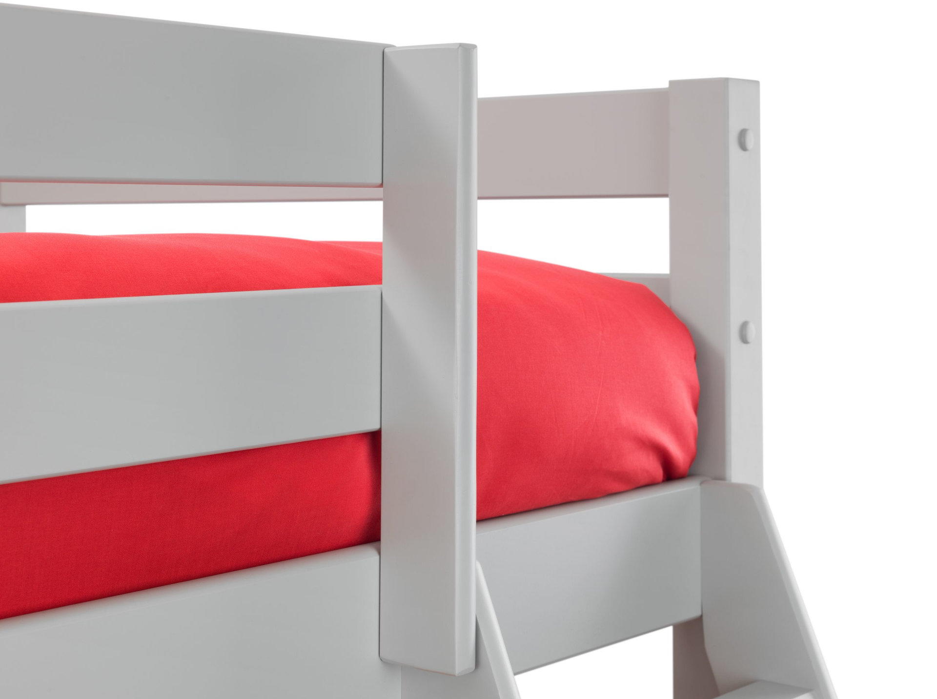 Top bunk fits a single mattress for compact sleeping space.