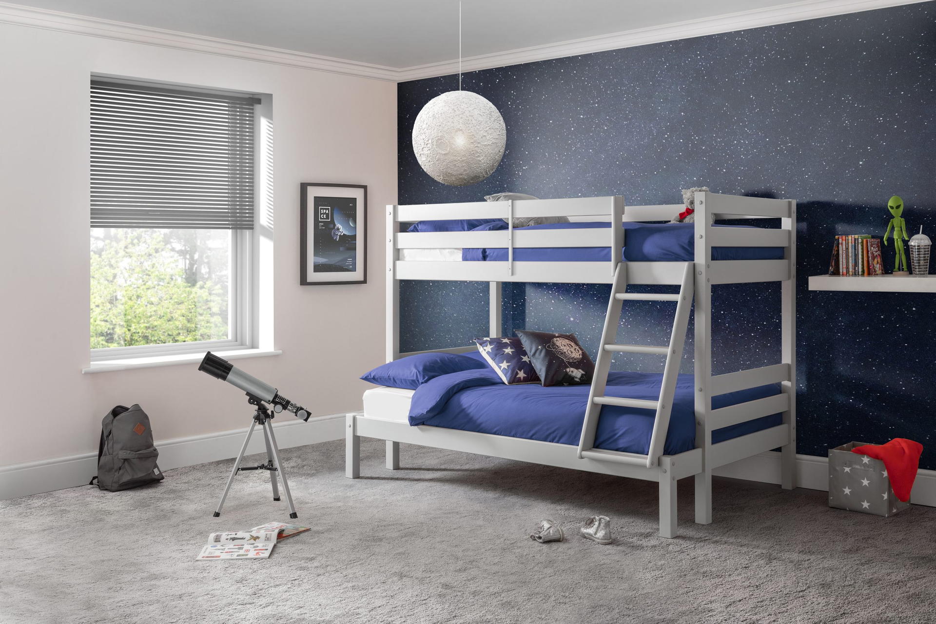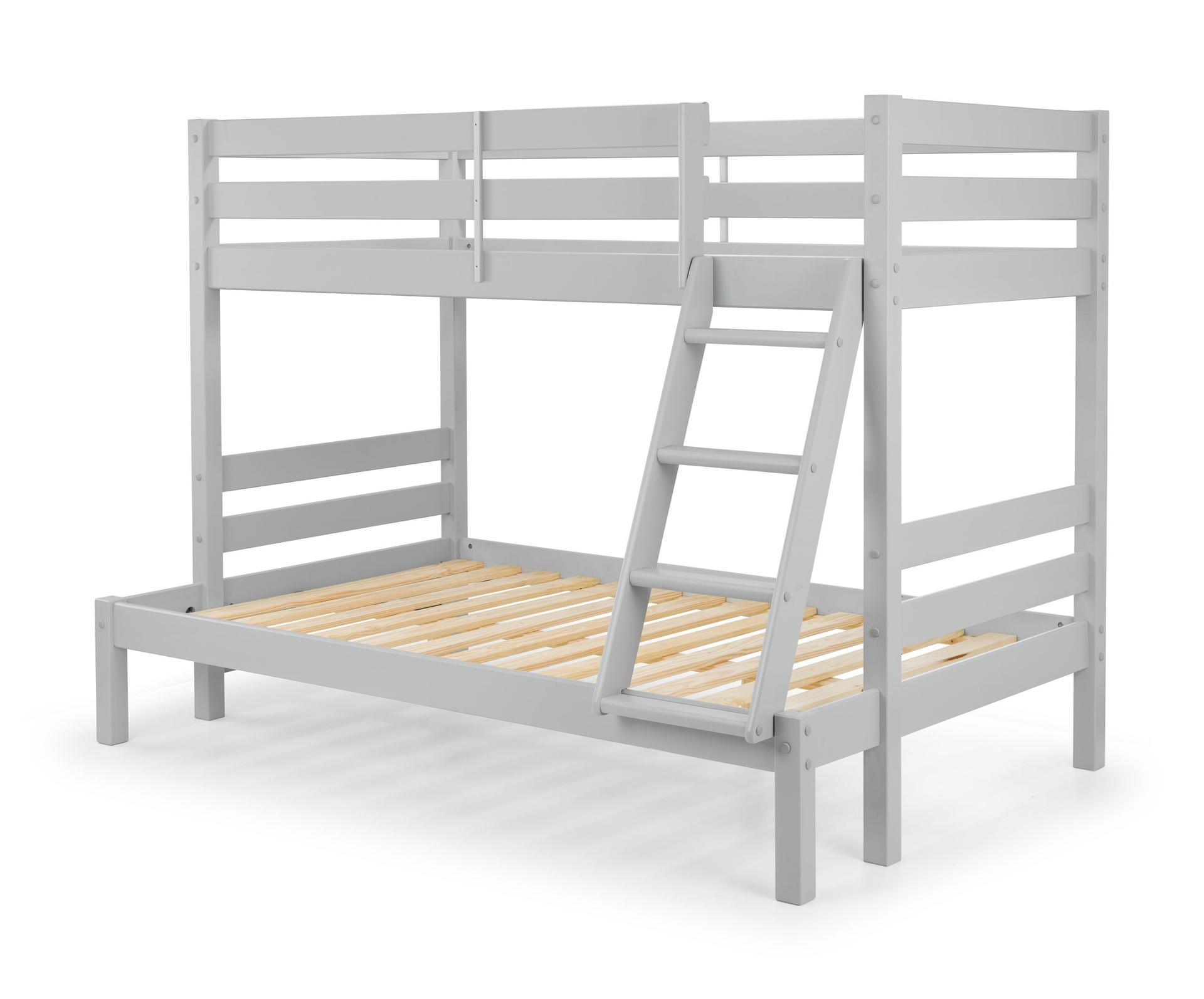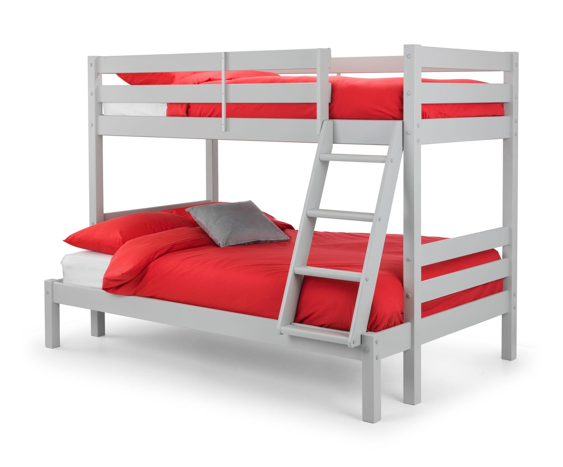 Experience the perfect blend of style and functionality with the Merlin Triple Sleeper. Finished in dove grey, this bunk bed boasts a sturdy frame that adds a touch of elegance to any bedroom. The top bunk, ideal for a single mattress, offers a cosy elevated space, while the spacious bottom bunk accommodates a small double mattress, giving you plenty of room to stretch out and relax. Mattress sold separately.