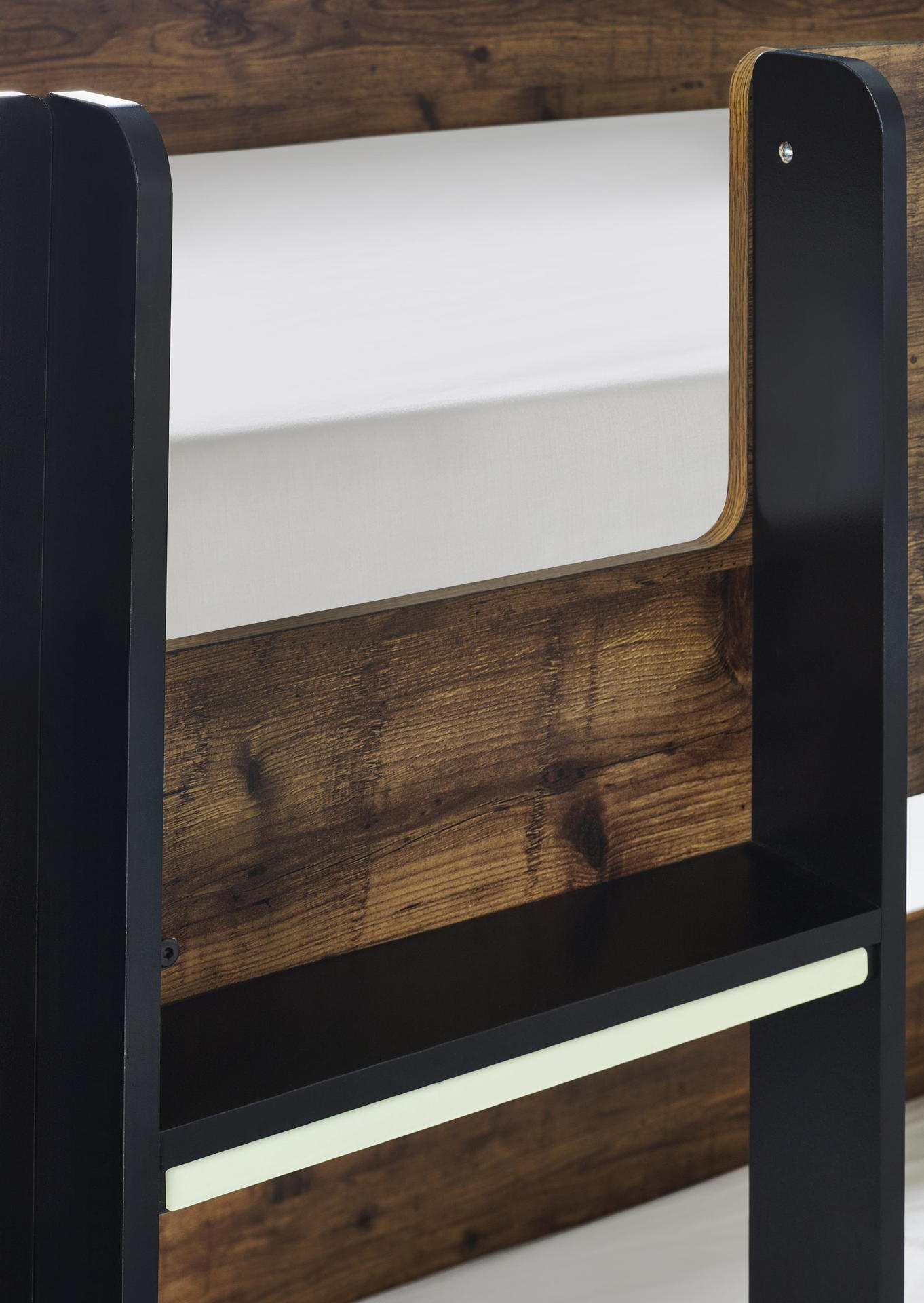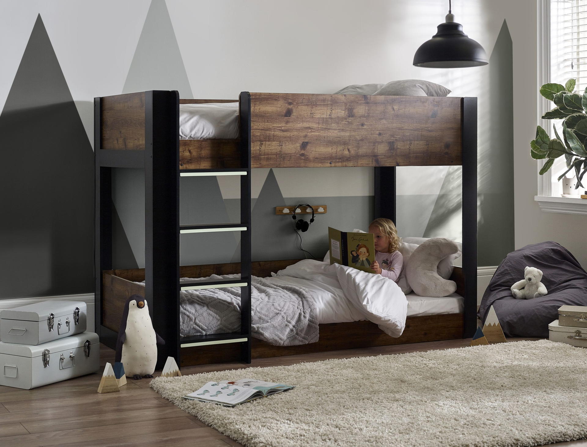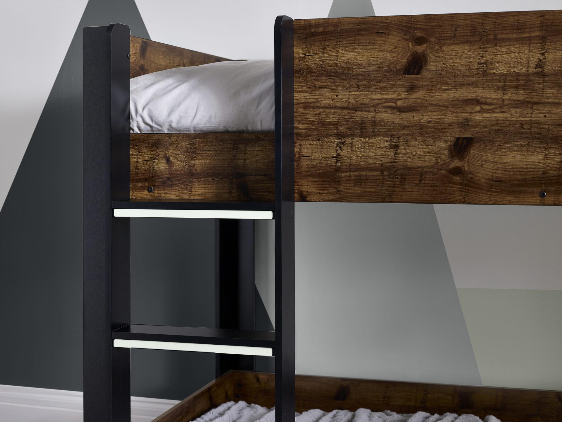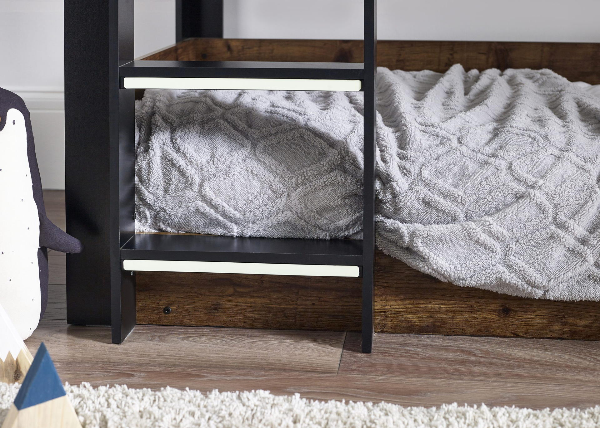 Transform bedtime into an enchanting adventure with the Solomon Bunk Bed, a cosy haven designed for style and safety. Finished in an urban rustic wood and black combination, this bunk bed seamlessly complements any decor, adding a touch of contemporary charm to your child’s room. The highlight is the glow-in-the-dark steps, turning bedtime into a magical experience while ensuring safe access to the top bunk. Crafted with the well-being of your little ones in mind, the bunk bed features a boarded headboard and footboard, offering extra security and peace of mind