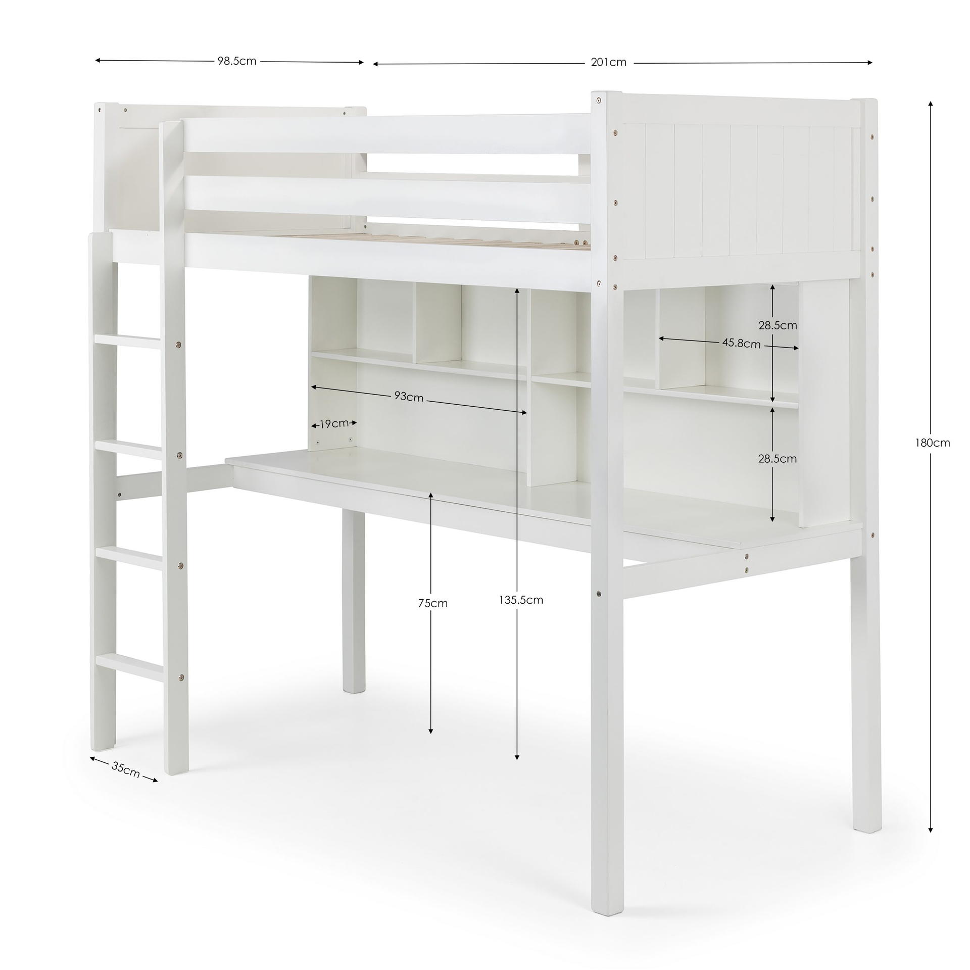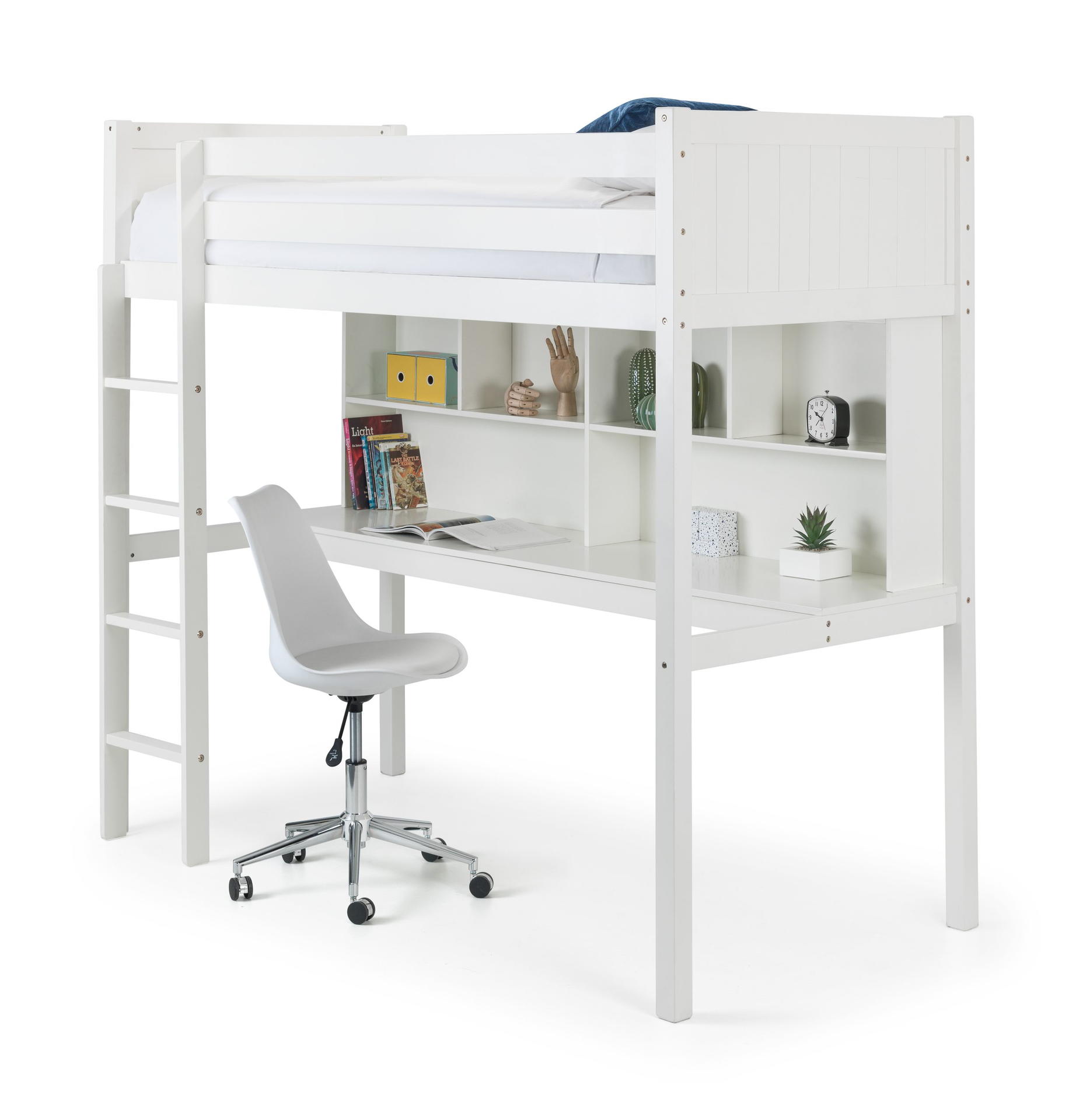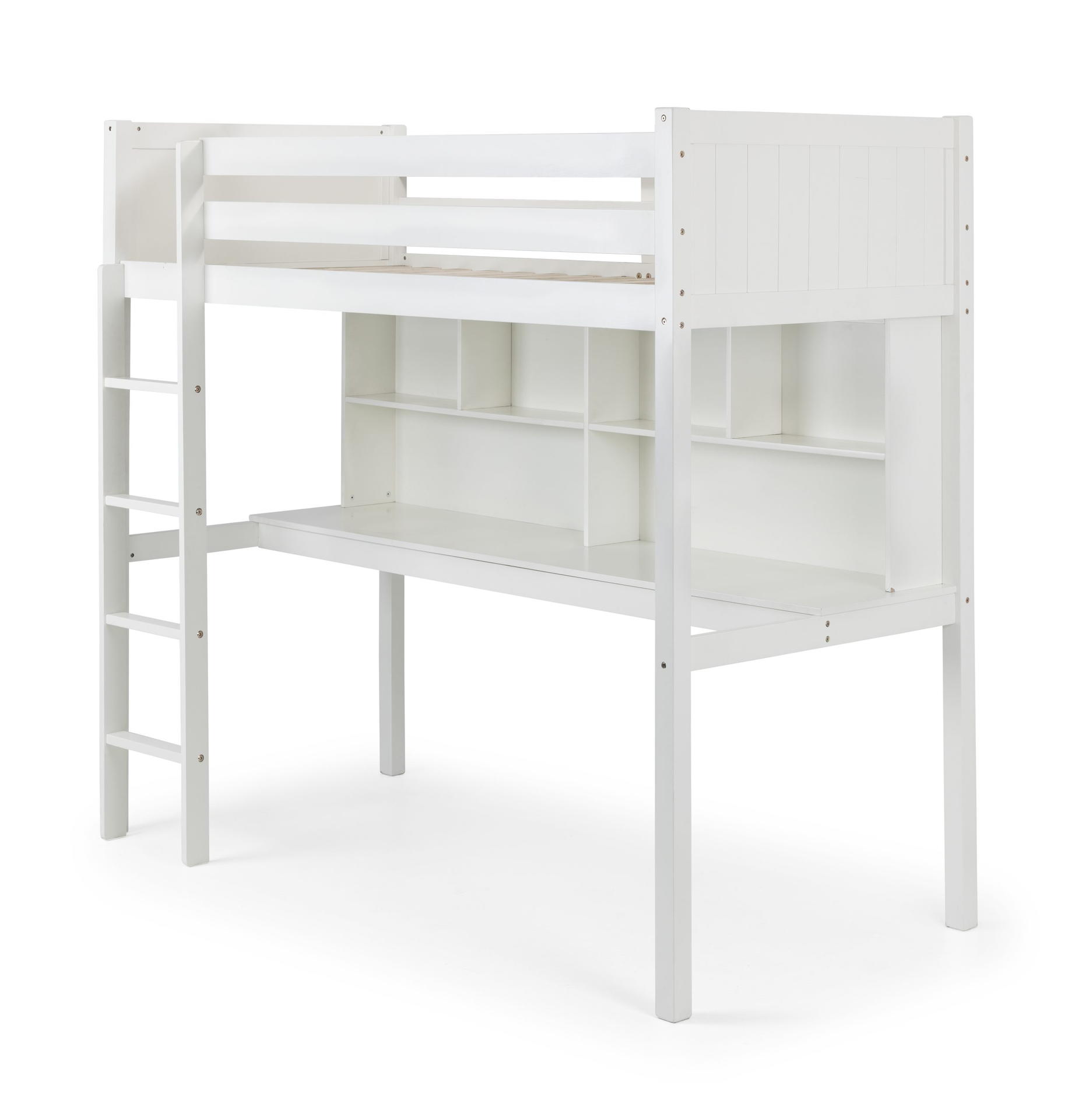 Crafted from Malaysian Hardwood and MDF, the Titan High sleeper is finished in a choice of White, Grey or Anthracite lacquer, matching with any bedroom décor as they grow. Offering a classic design with panelled detailing, this high sleeper features a workstation underneath, complete with shelves and room beneath for extra storage.