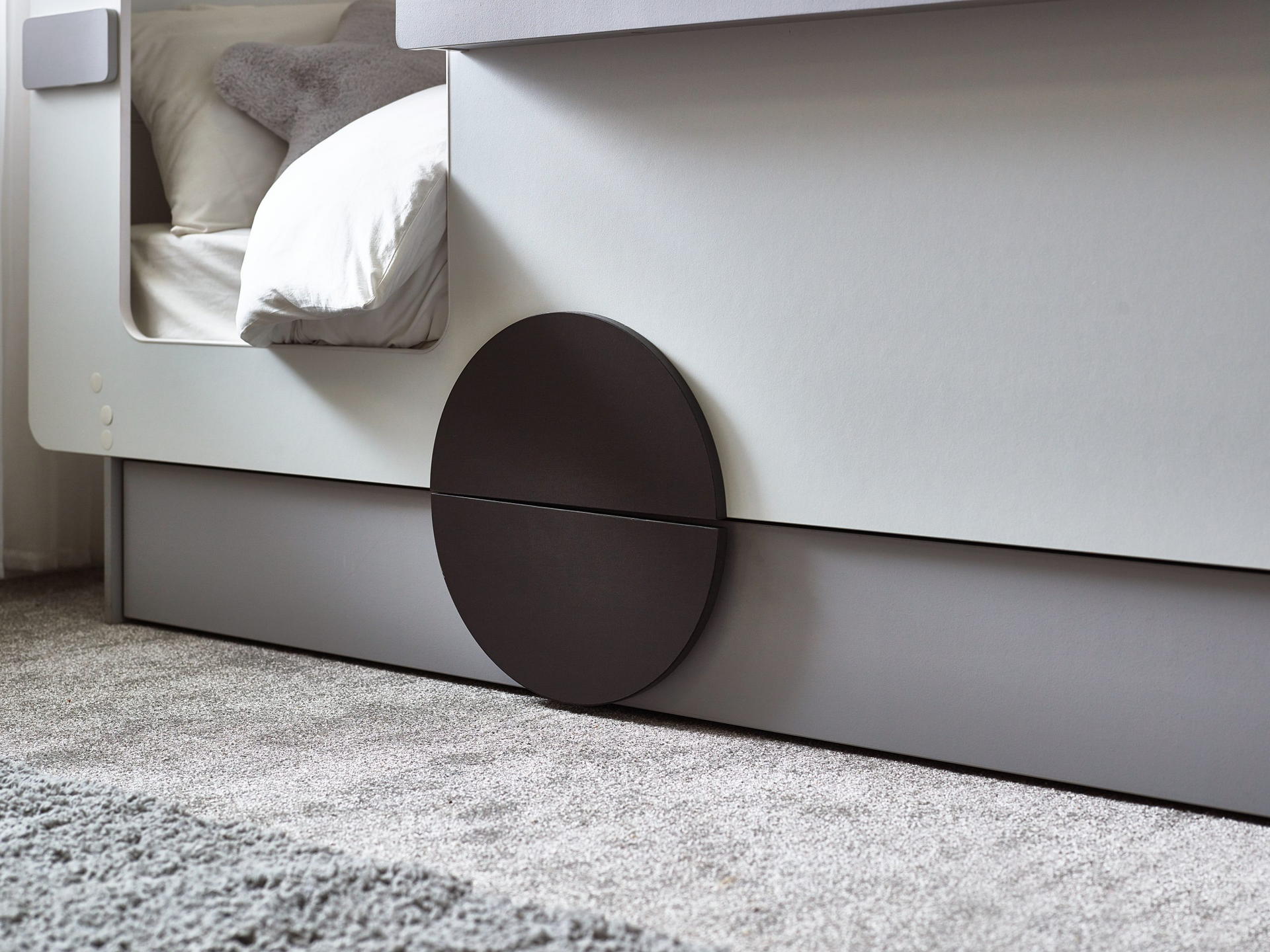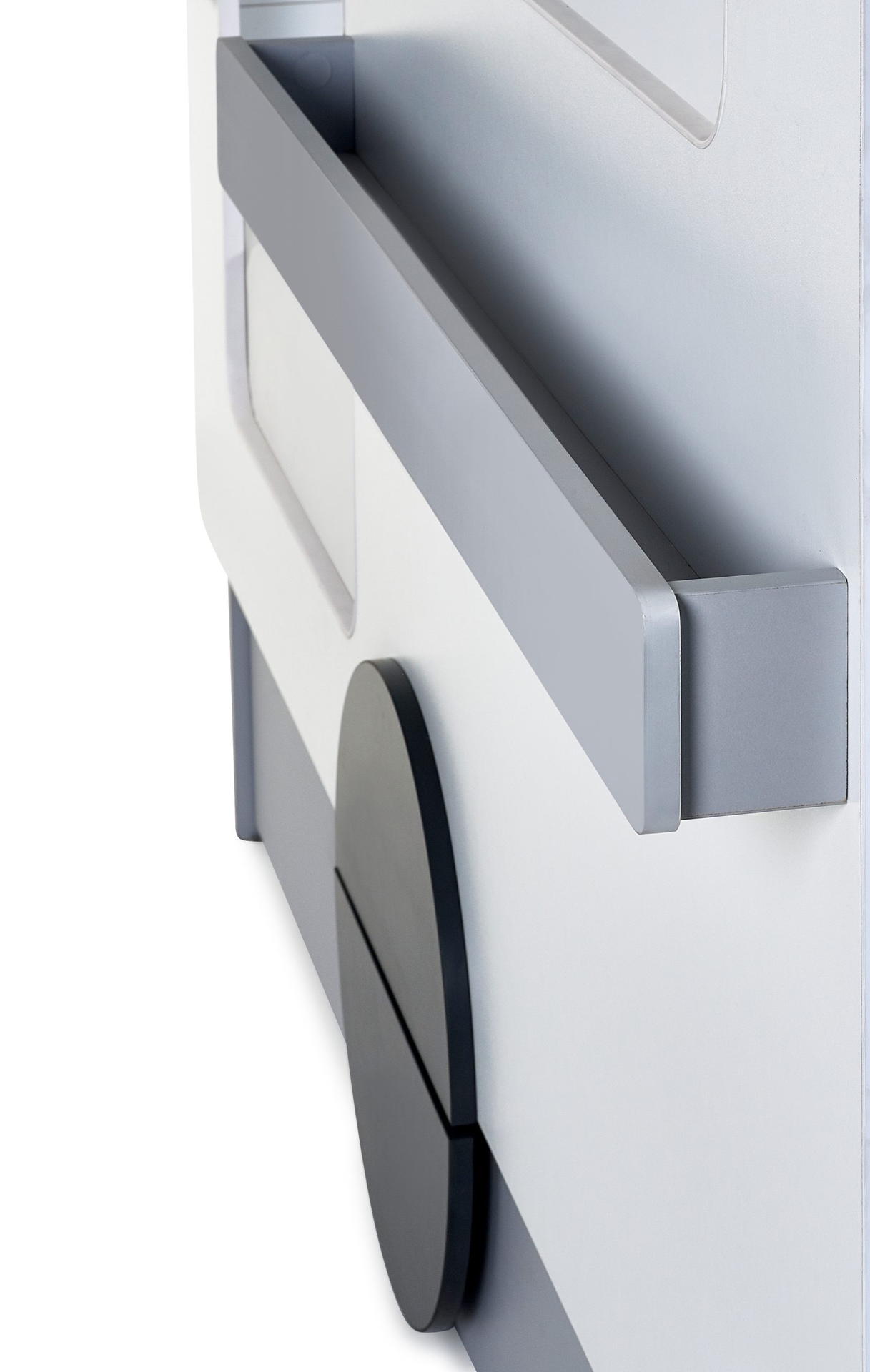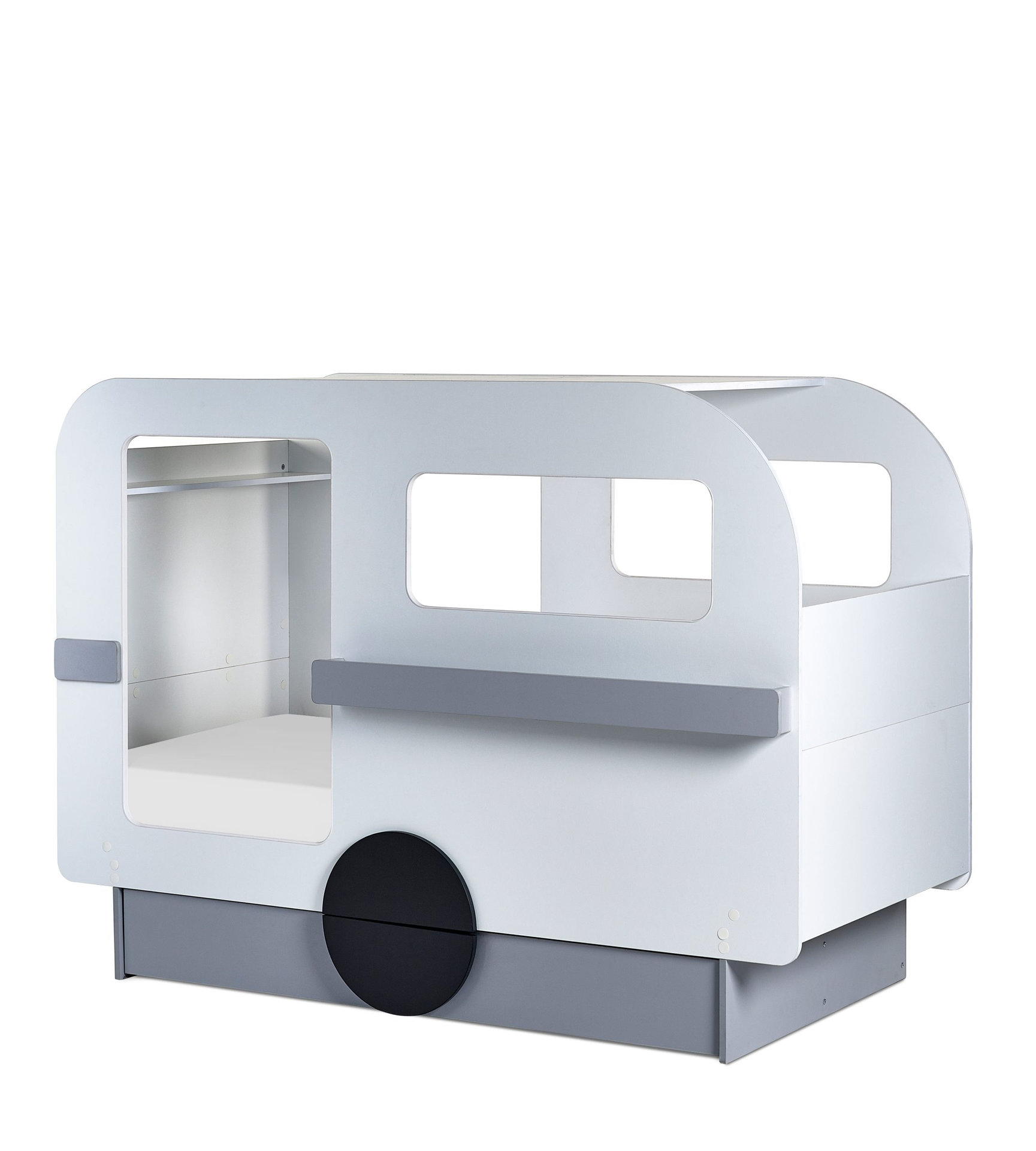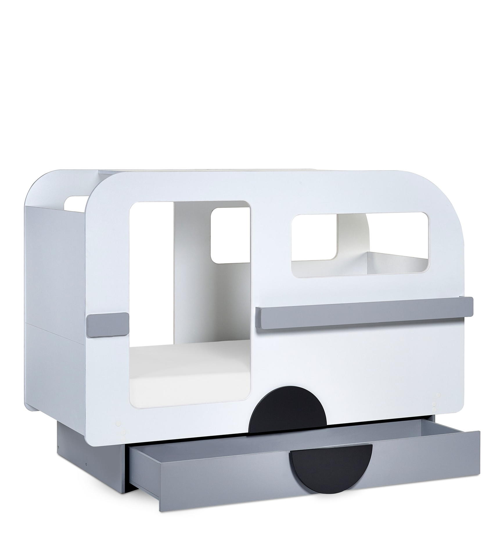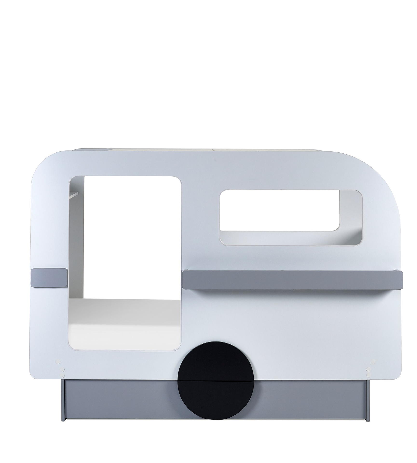 Escape, Enjoy, and Sleep! Let your little one’s imagination go wild and experience traveling around in our wonderful Tourer Cavan Bed. With its unique Caravan shape, the Tourer bed offers shelves from both the inside and front perfect for storing books and toys. As well as a pull-out drawer at the bottom bed for storing away all the essentials from blankets to toys. Finished in lacquered white, grey, and black round-shaped wheels. Creating the perfect adventures for your younger ones.