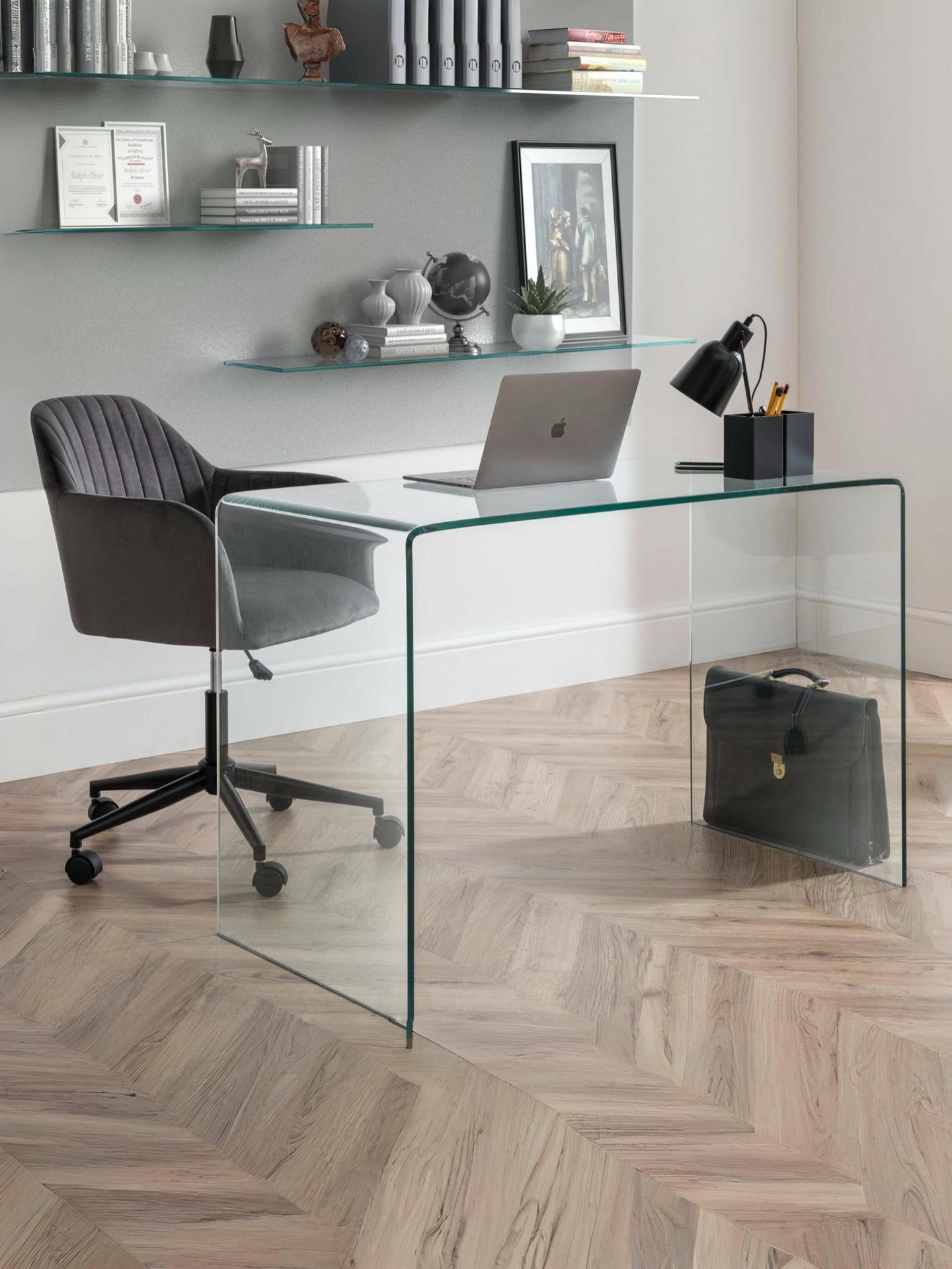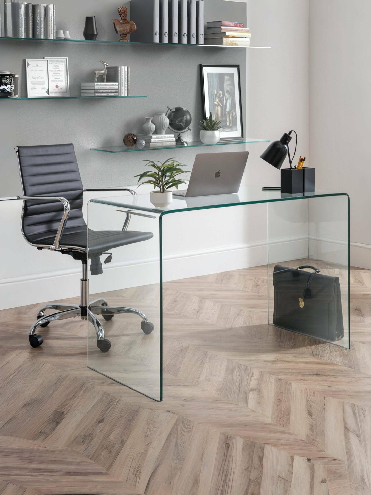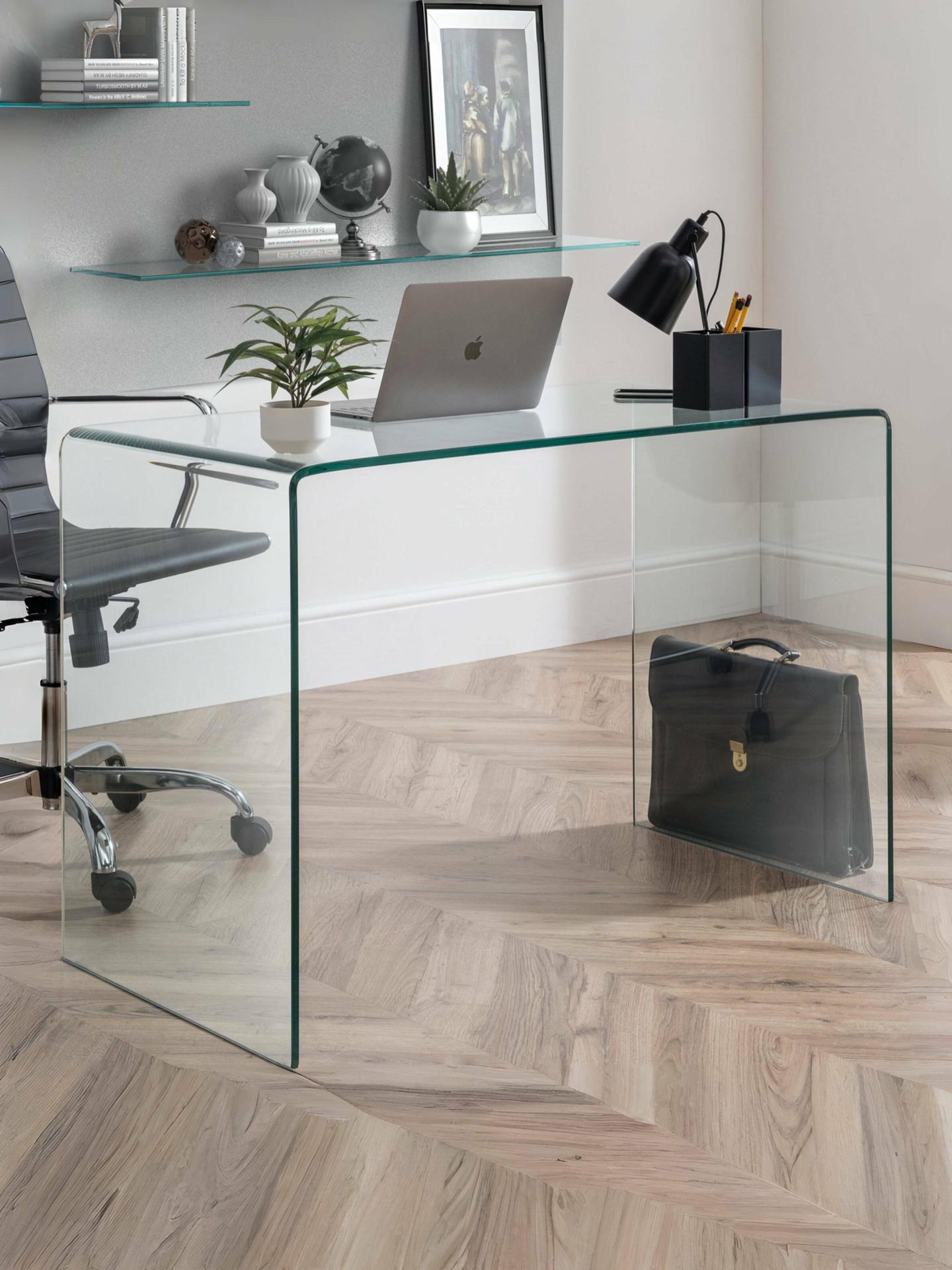 This Amalfi bent glass desk is beautifully crafted from a single sheet of tempered glass, bent and moulded into a curvaceous design with no joins or fixings. From a collection of three pieces, the Julian Bowen Amalfi clear glass range will create the feeling of more space in your home, whilst adding a touch of elegance.