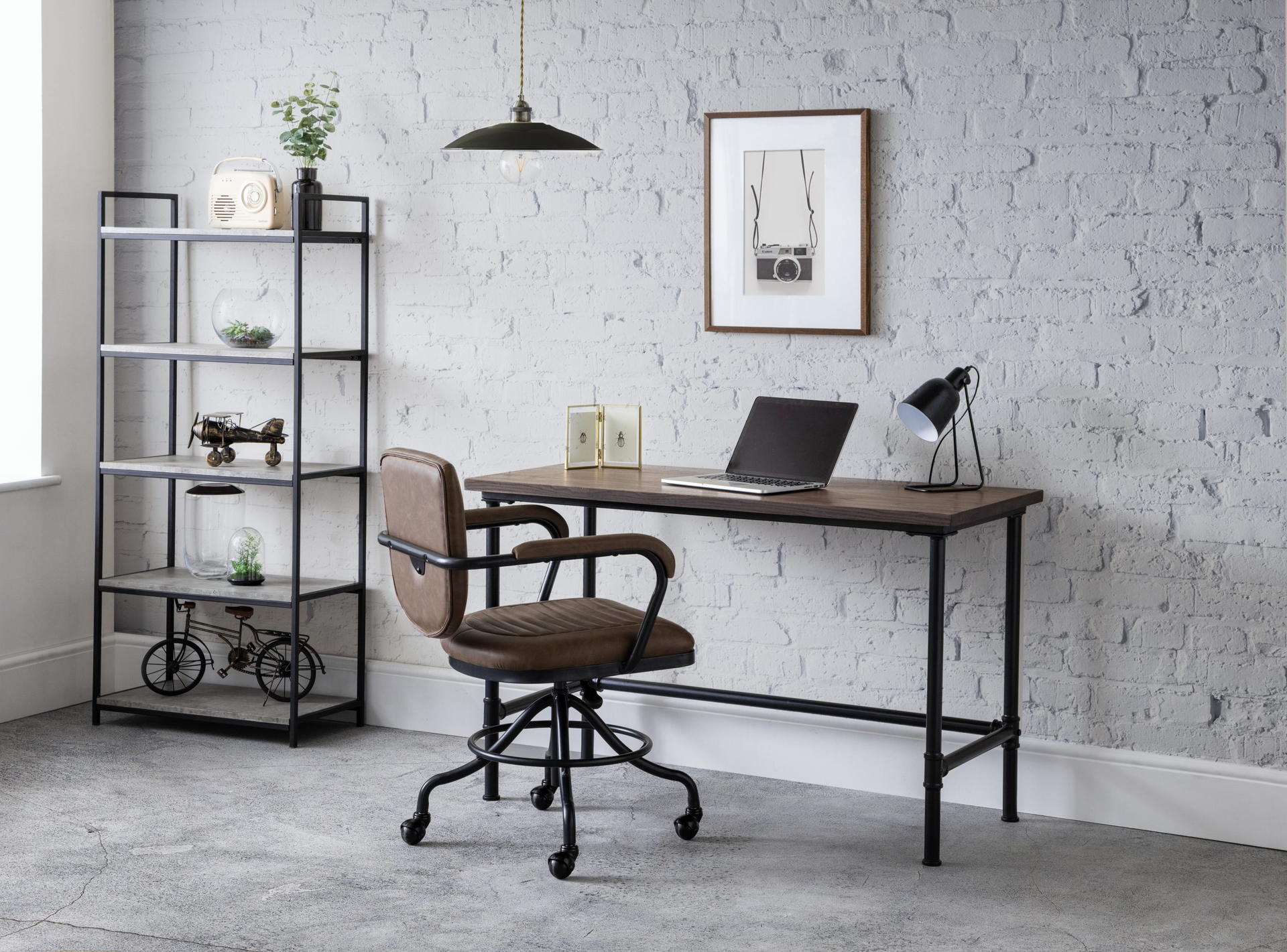 Functional and solid, the Carnegie Desk is finished with a mocha elm top and sturdy black powder coated steel pipe effect legs. Perfect for a wide range of décor, this stylish industrial desk offers a simple, yet striking addition to any home office.