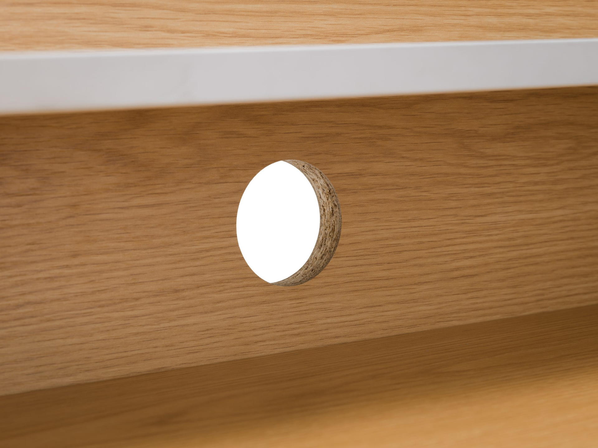 A cable hole is available at the back of the desk.