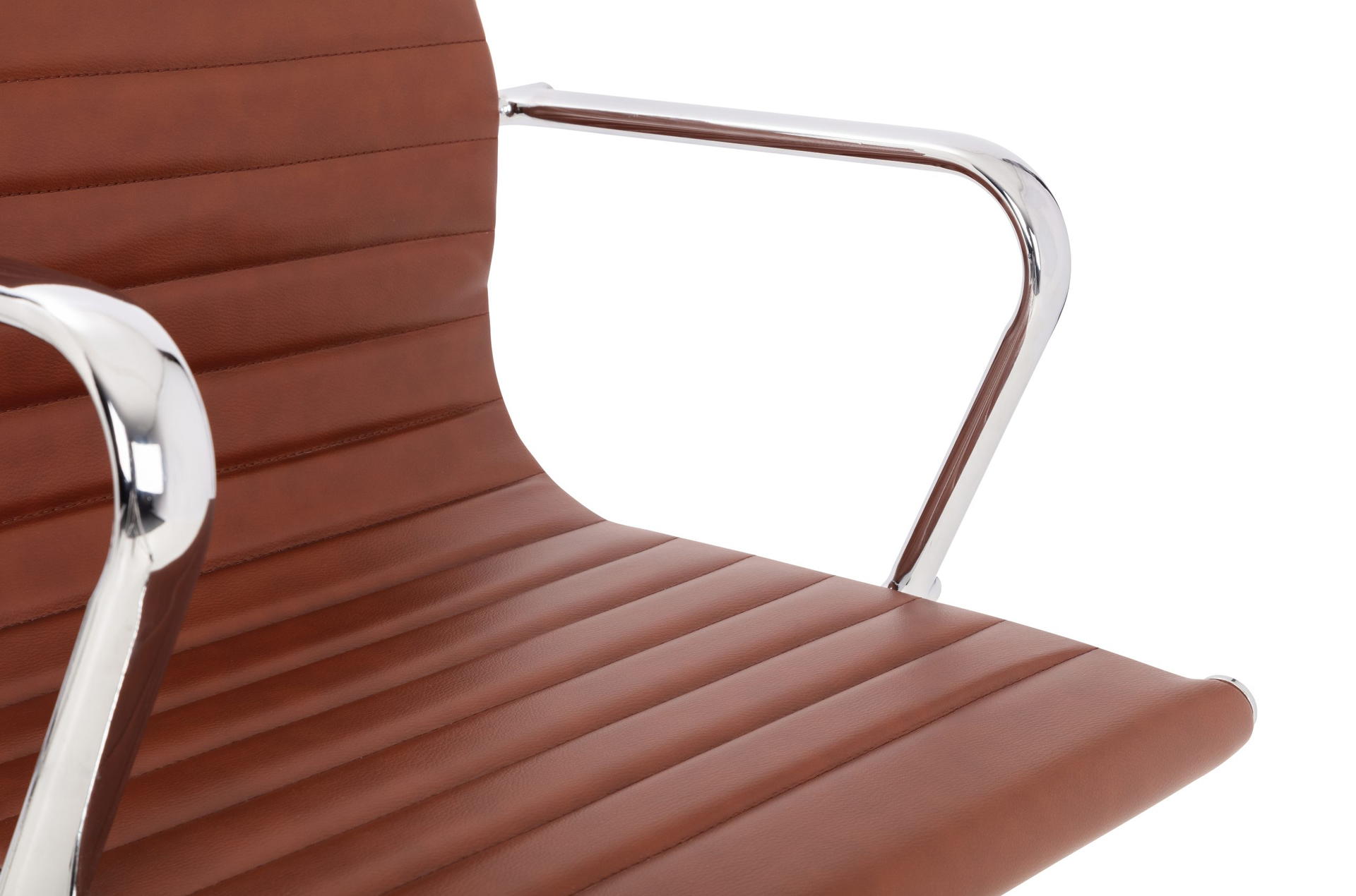 Finished in a Brown Faux Leather with a chrome base.