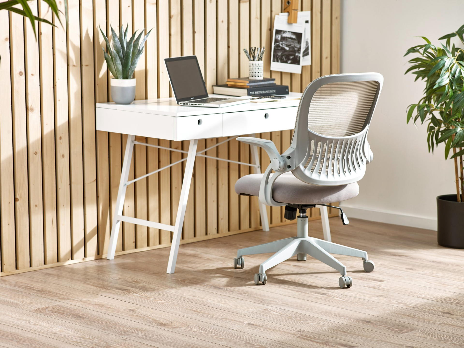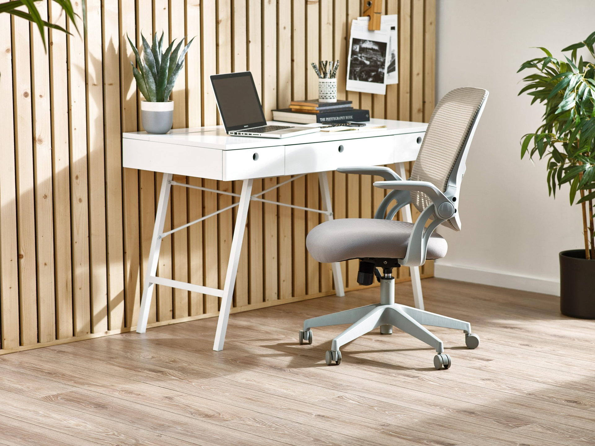 The Juno Office Chair is the perfect harmony of comfort and style, designed to elevate your workspace. With a meticulously designed curved grey mesh back, this chair ensures optimal support and breathability, guaranteeing ease throughout your workday. The grey frame back provides an additional layer of support, promoting ergonomic excellence and fostering ideal posture for a healthier work experience. Equipped with a grey base featuring five coasters and an adjustable height and tilt mechanism, allowing you to personalise your seating arrangement. The thoughtful addition of flip-up armrests adds convenience and flexibility to your office setup