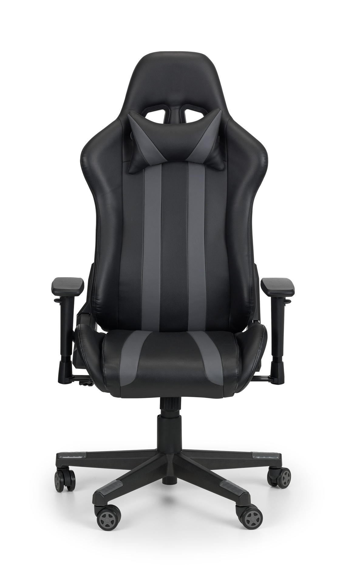 Finished in a black faux leather with striking grey accents, the Meteor Gaming Chair features a high back with a head pillow, offering full back and neck support. This Chair can be fully adjusted including the armrests, allowing you to get into your best position for your hours of game play. Easily move around on the Meteor gaming chair upon its 5 castors, suitable for gamers or those spending long days at a desk.