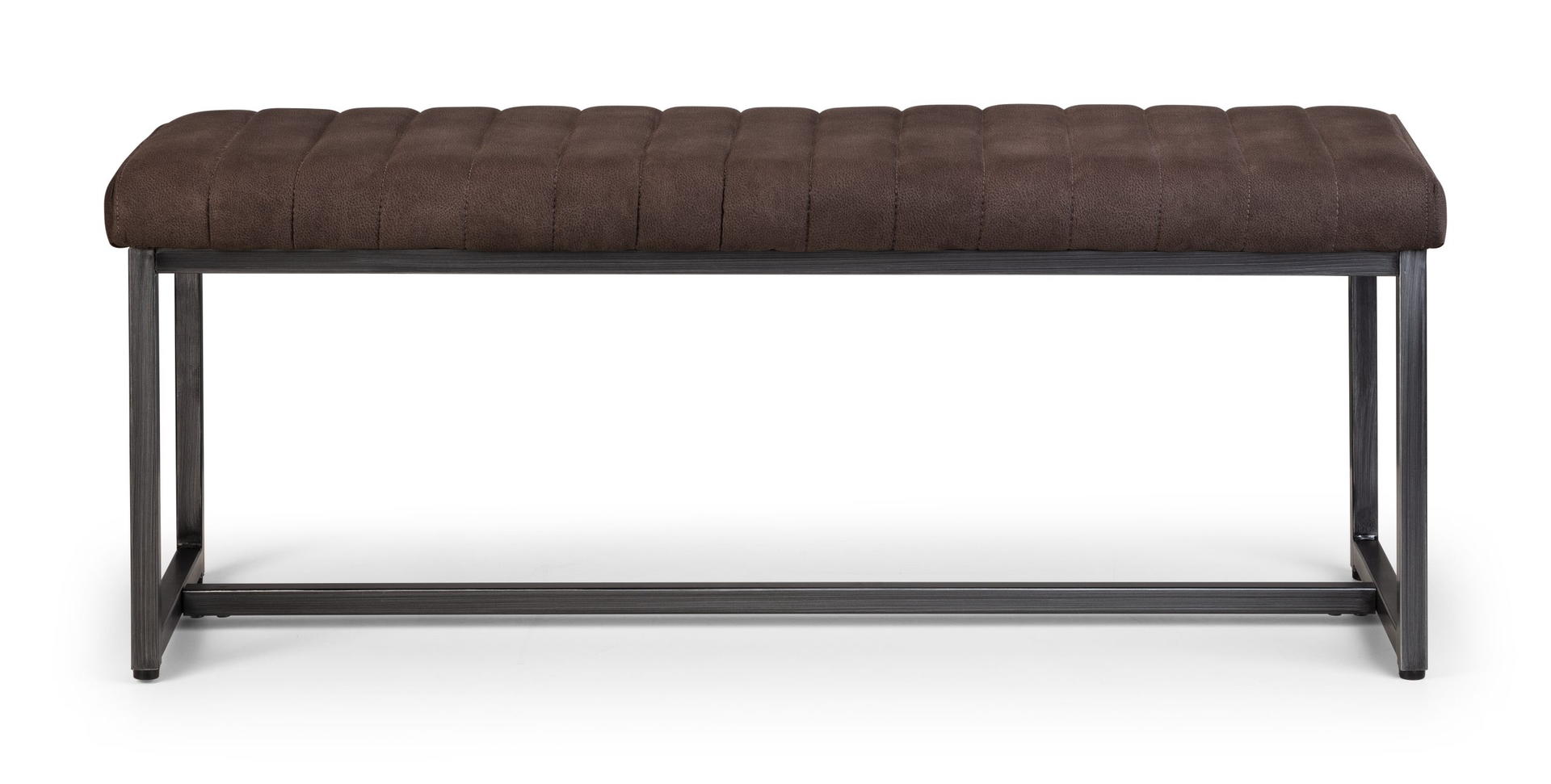The Brooklyn Upholstered bench brings an industrial, retro design to any dining room. Finished in a charcoal grey suede, upon an industrial style gunmetal frame this bench is the perfect match for the Brooklyn Dining Table. Part of the Julian Bowen Brooklyn Dining and Occasional Collection.