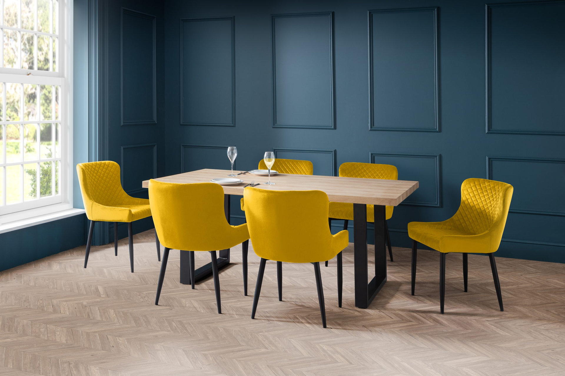 Berwick Rectangular Table and 6 Mustard Luxe Chairs