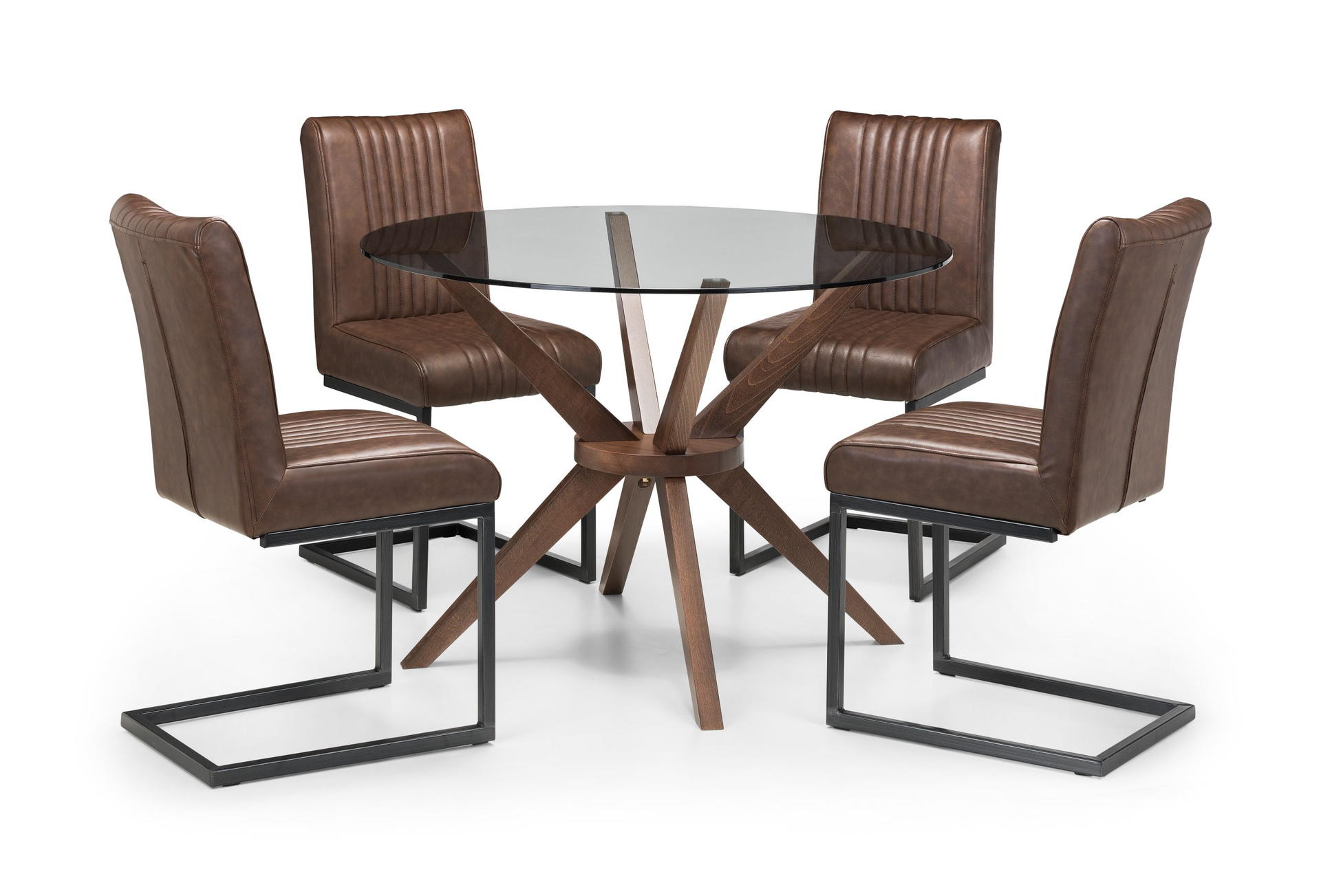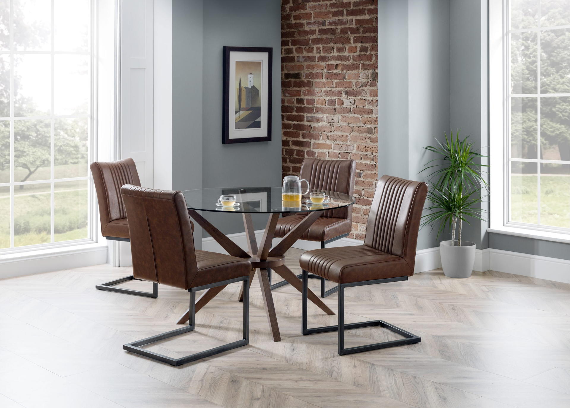 Chelsea 120cm Round Table and 4 Brown Brooklyn Chairs