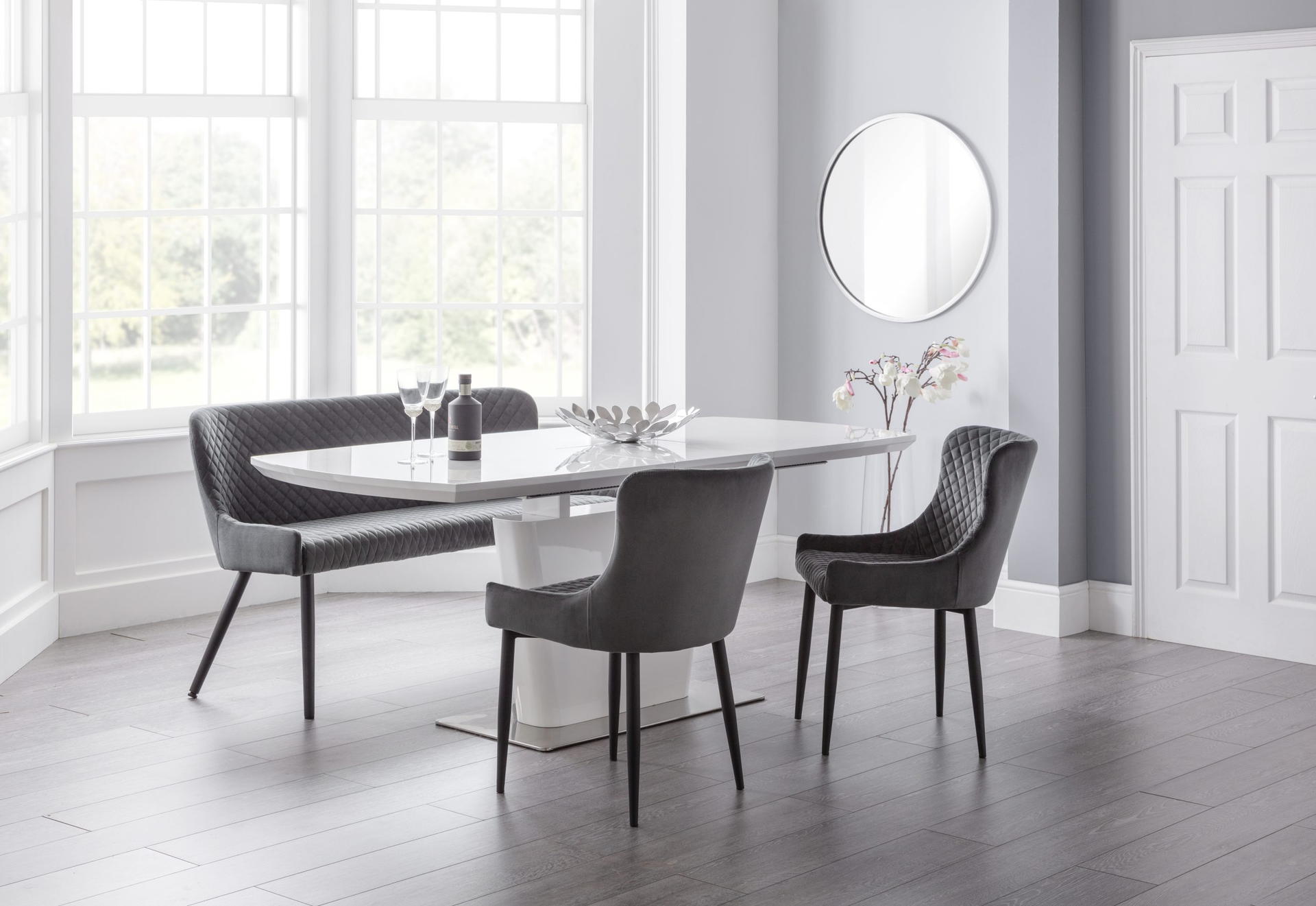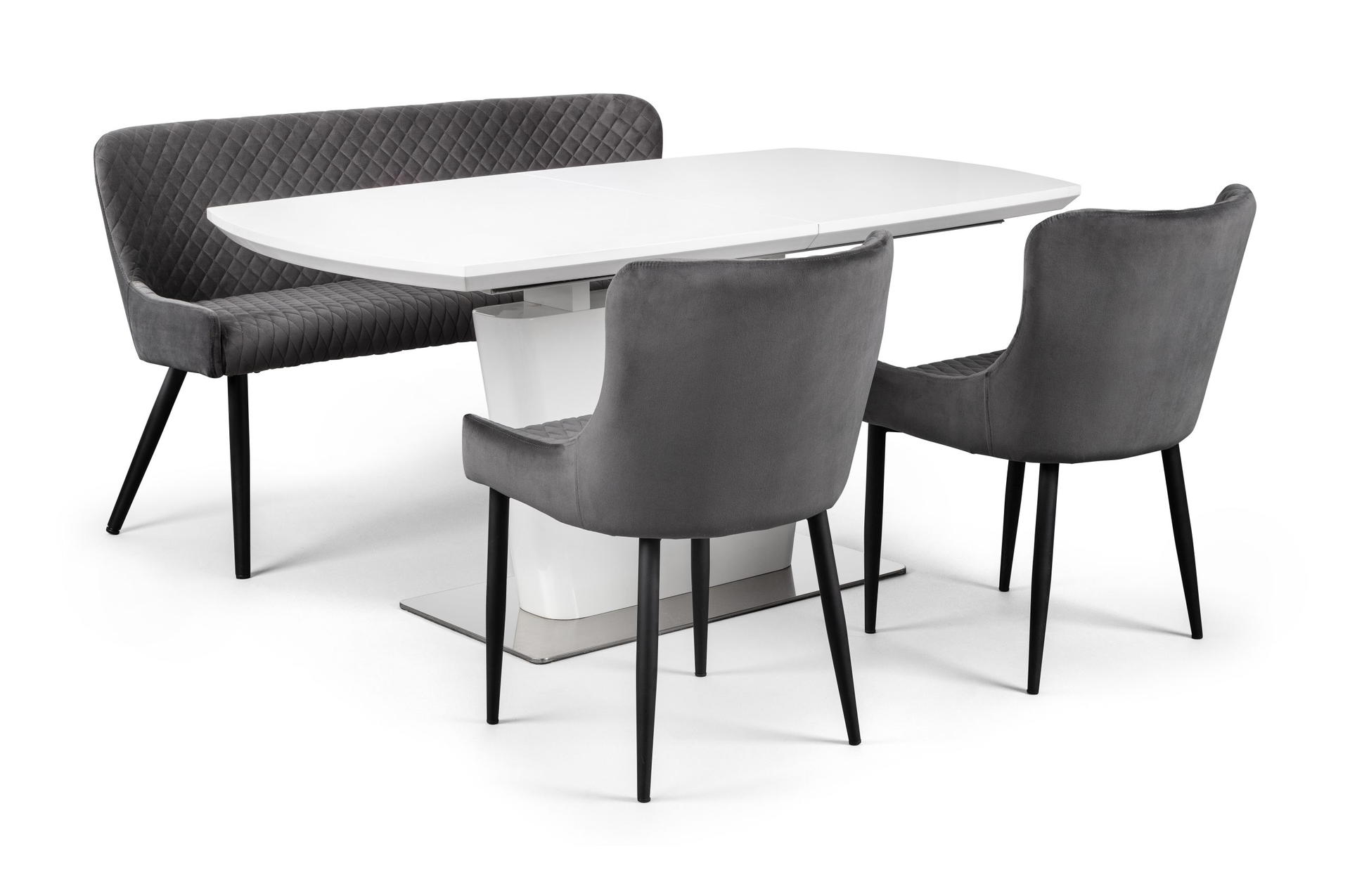Como White High Gloss Table , 1 Grey Luxe High Bench and 2 Grey Luxe Chairs