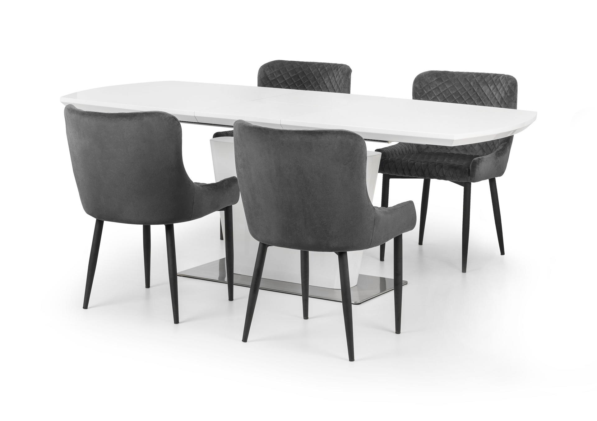 Como White High Gloss Table and 4 Grey Luxe Chairs