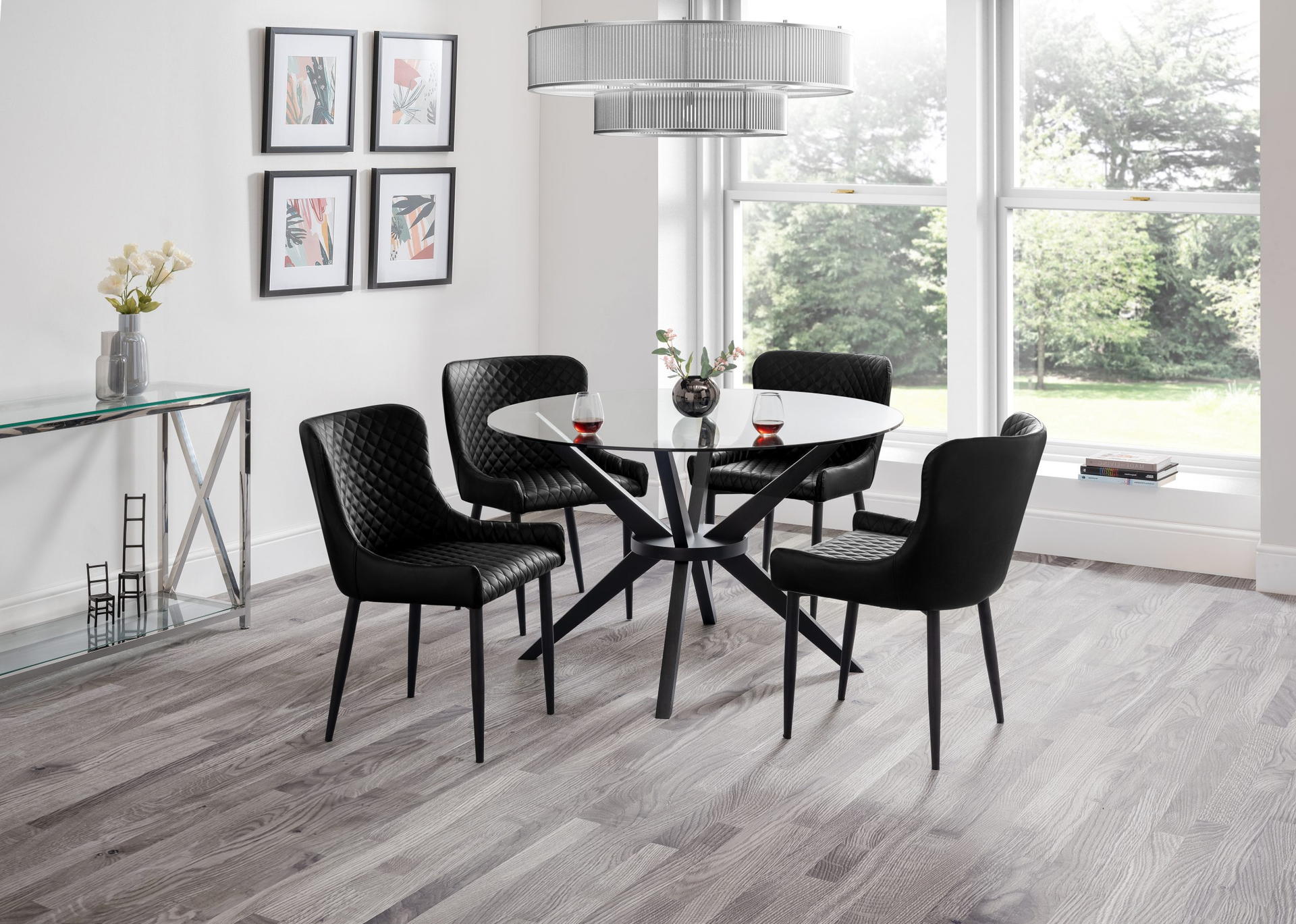 Hayden Table and 4 Luxe Black Chairs