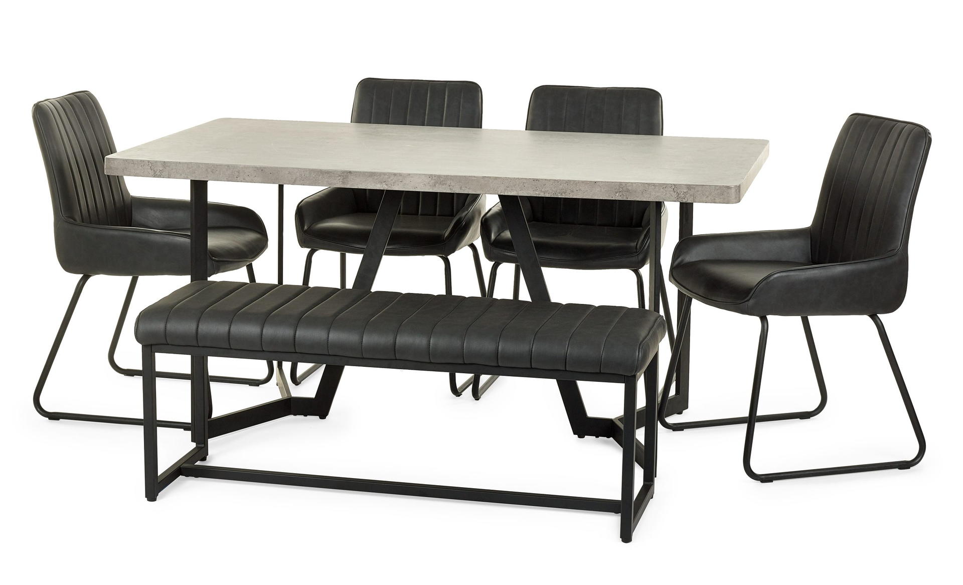 Miller Concrete Effect Dining Table, Soho Bench & 4 Soho Chairs