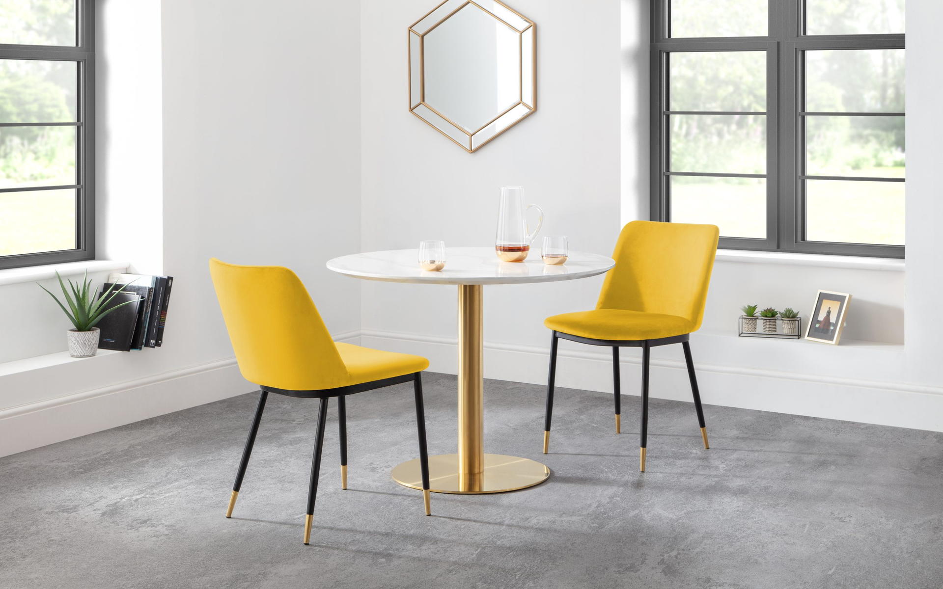 Palermo Round Table and 2 Mustard Delaunay Chairs