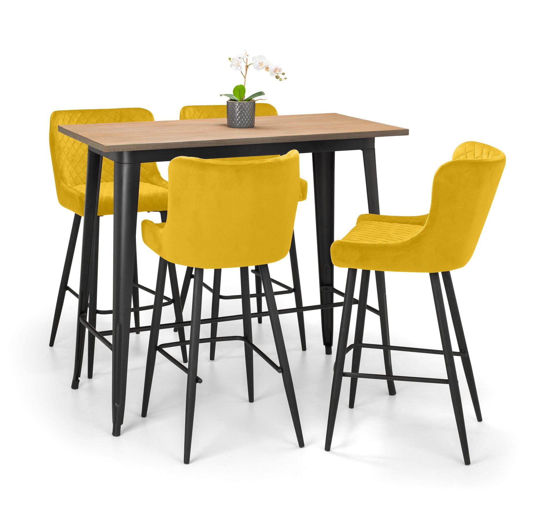 The Luxe Bar Stool offers a striking statement look, creating a welcome addition in any home bar or kitchen. Upholstered in a choice of Grey, Blue or Mustard velvet with luxurious quilted stitching, upon contemporary black legs, the Luxe adds a touch of elegance to any home.