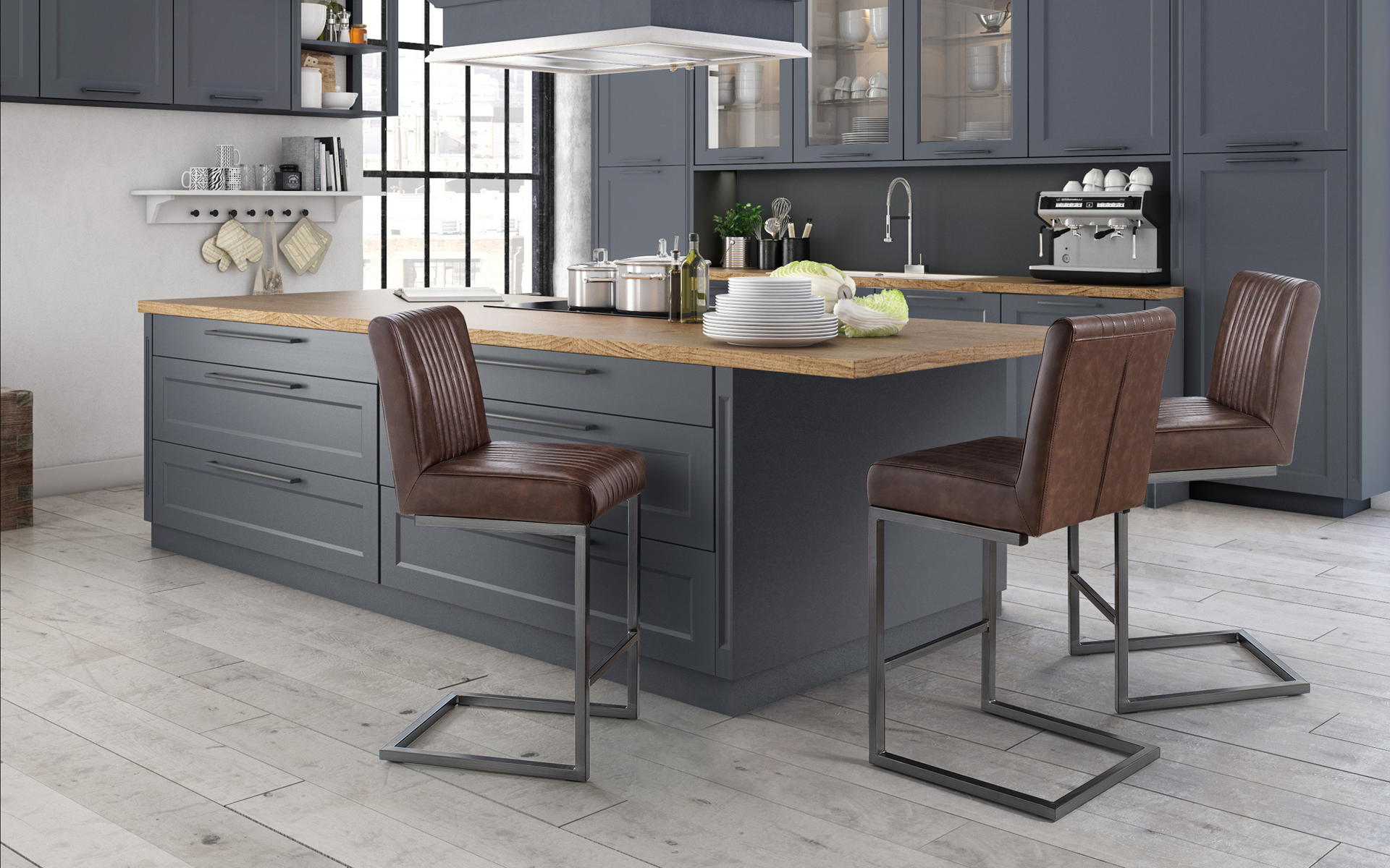 The Brooklyn Bar Stool has an industrial, retro design in a vintage brown faux leather finish with a cantilever style gunmetal leg frame. Offering maximum comfort and style, this padded Bar Stool would sit beautifully in any kitchen!