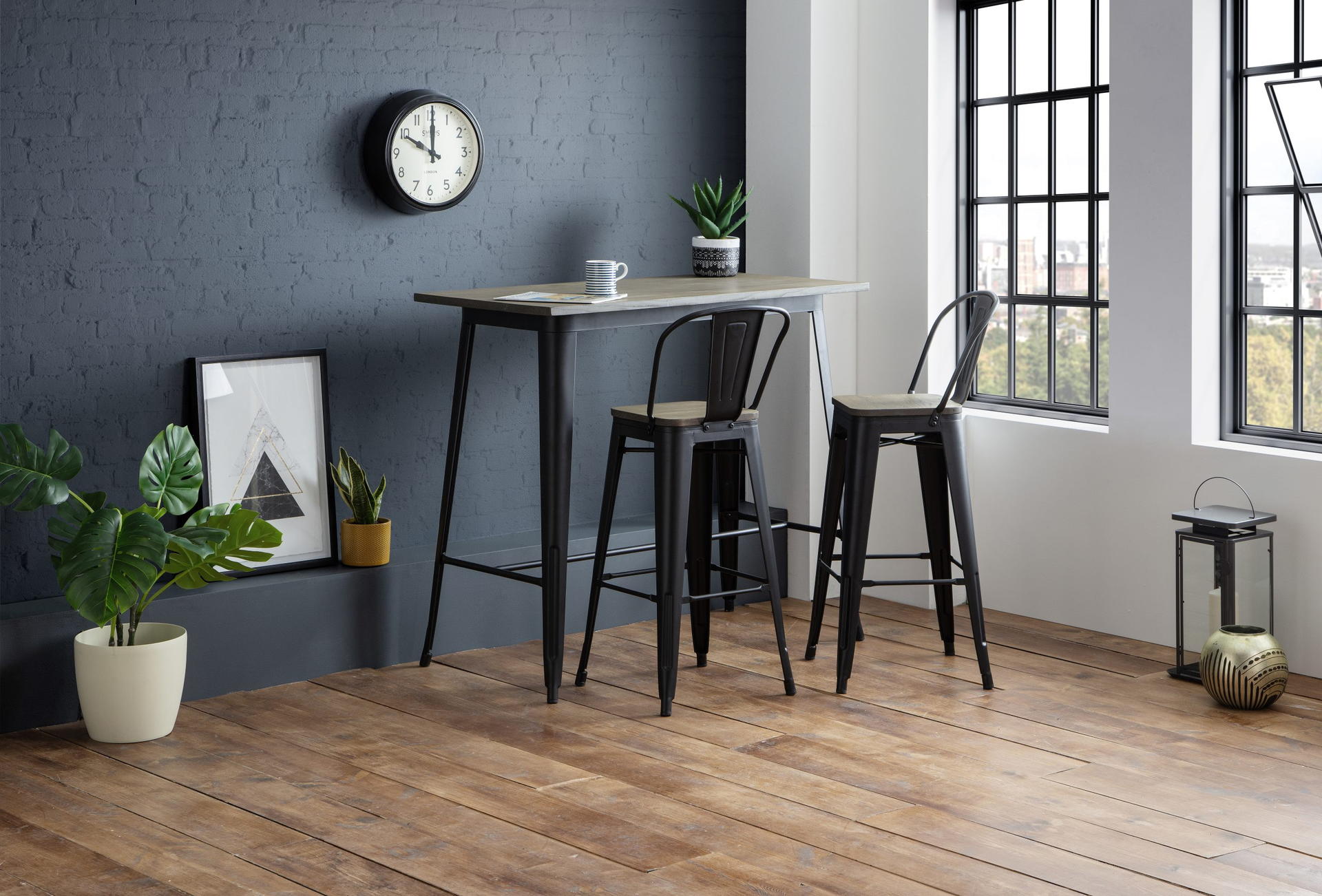 Crafted from Solid Elm wood and Satin black powder coated steel.