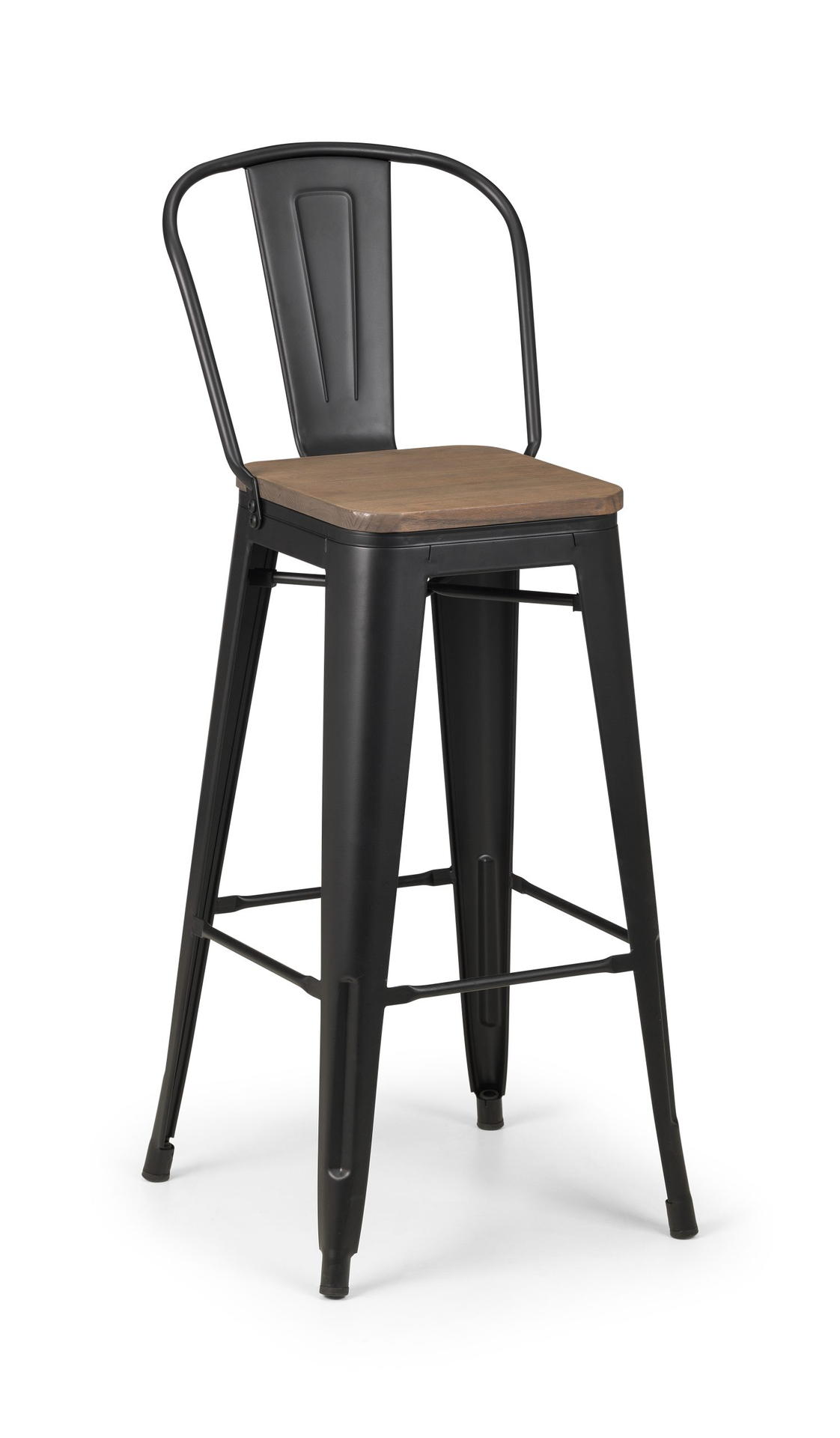 Crafted from solid Elm wood and satin black powder coated steel, The Grafton Bar Stool is perfect for any bar or high table. Featuring an open curved back for extra comfort, the Grafton Bar Stool will add an industrial touch to any room. Perfect match for the Grafton Bar Table.