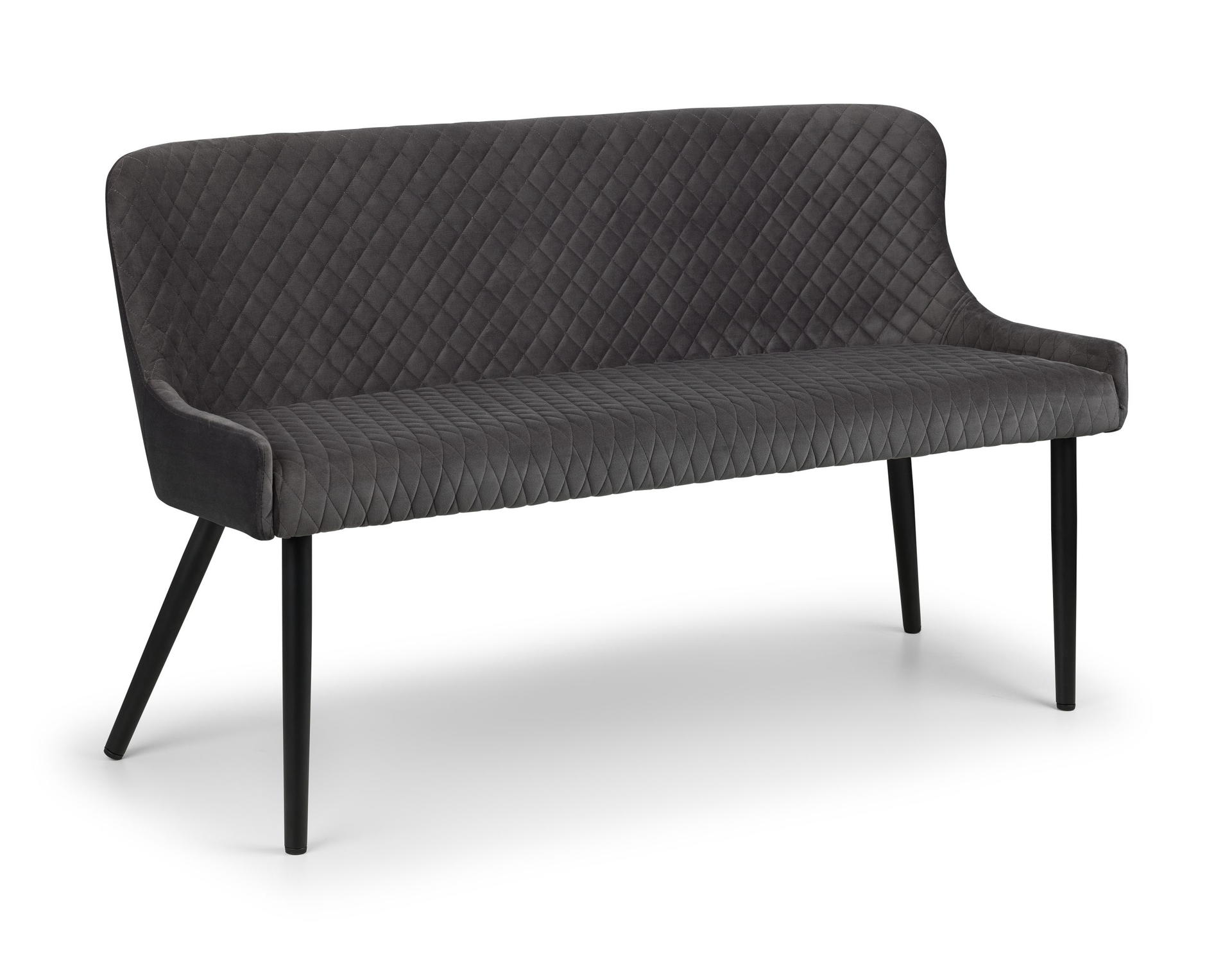 Upholstered in luxurious grey velvet fabric with quilted detailing.