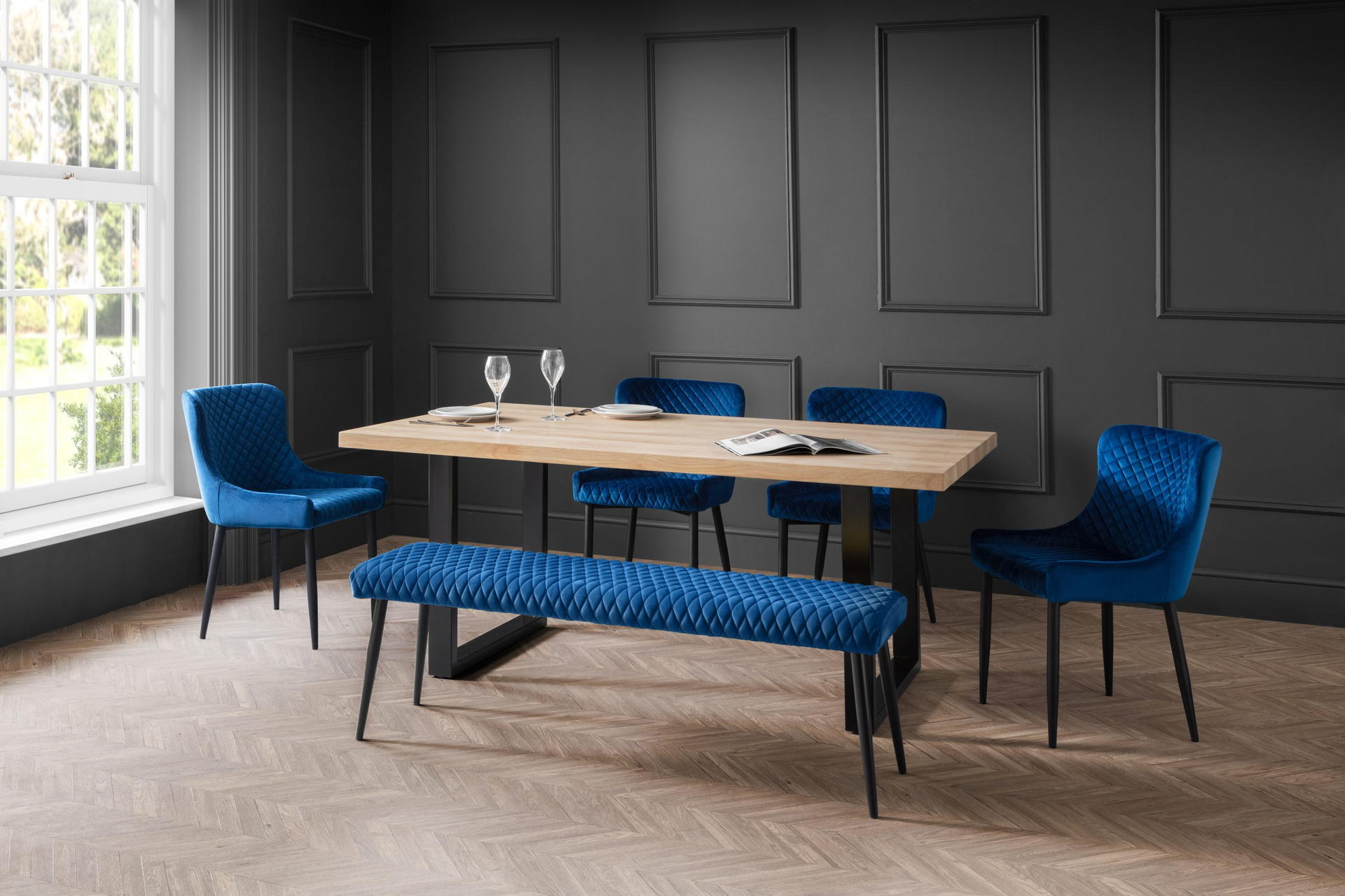 Beautifully upholstered in a luxurious velvet fabric finished with a stunning quilted detail, the Luxe Low Bench is available in Mustard, Blue, or Grey. Perfect for a striking hallway bench, or a statement dining area, with matching Luxe Chairs available.