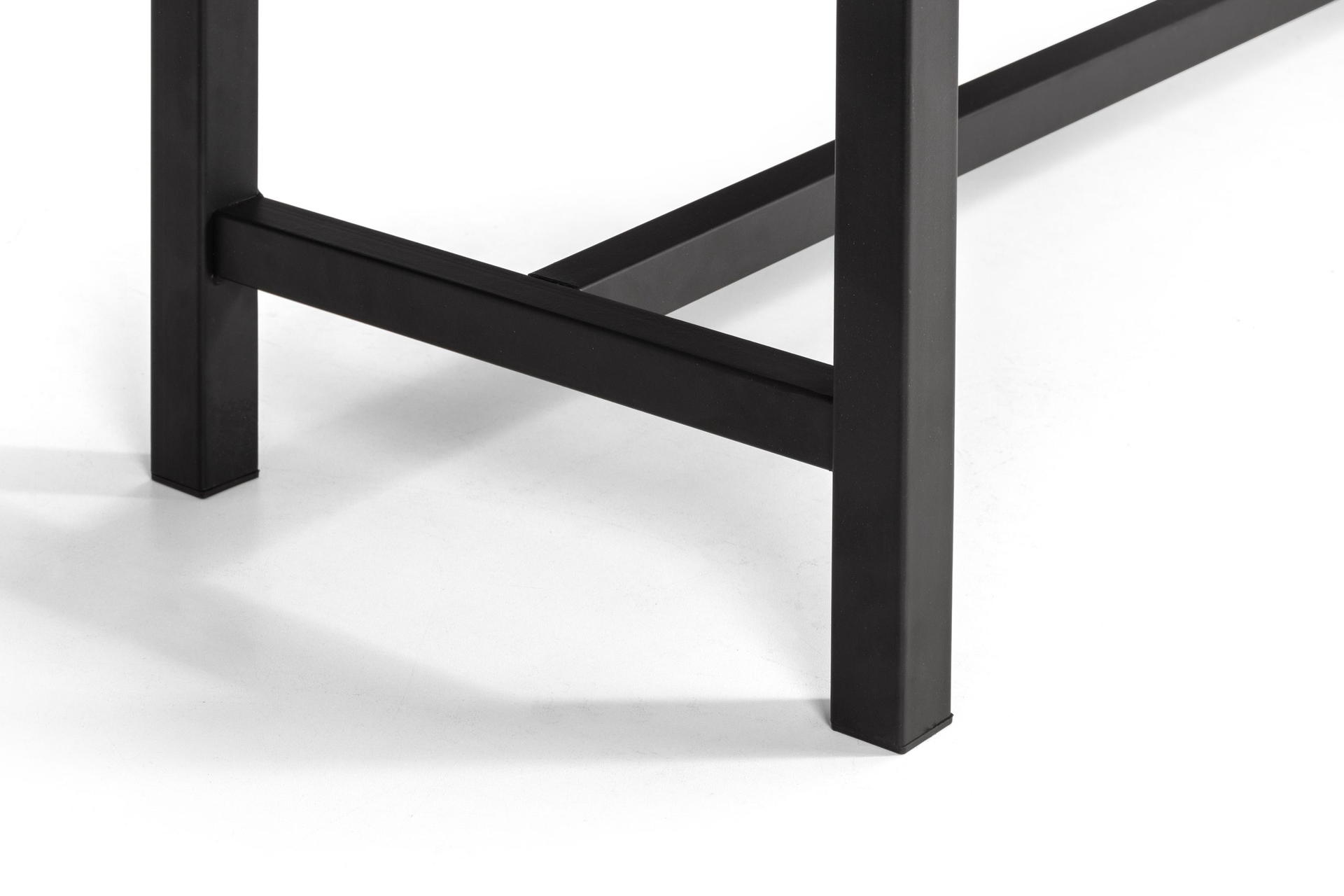 A cool, modern dining bench designed to add a contemporary touch to any dining space. Its simple clean lines, delineated by a subtle, black coated metal frame are complemented perfectly by a warm, walnut foil, to create a very stylish and sleek product. The perfect match for the Tribeca Dining Table, creating a modern atmosphere within your home.