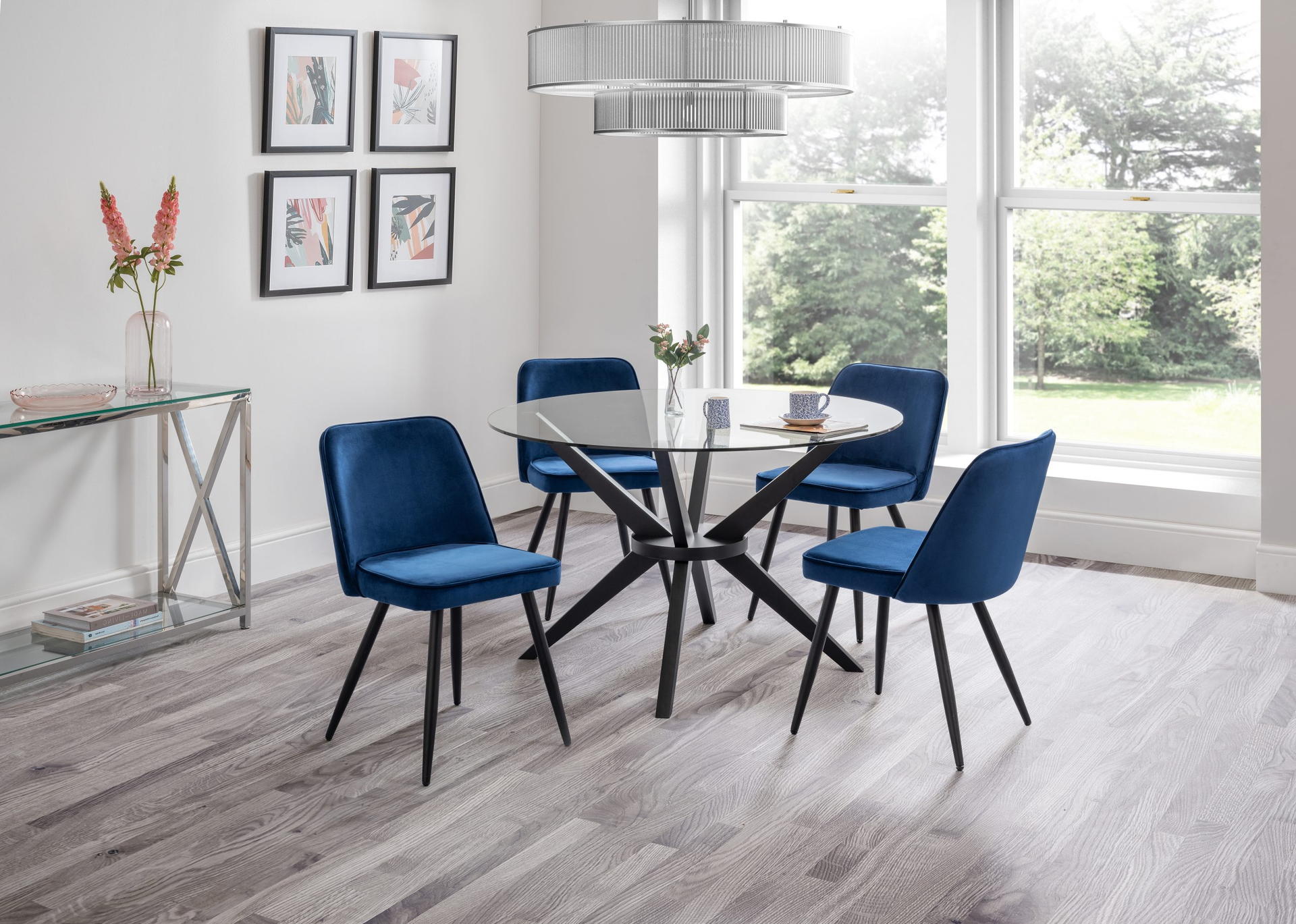 With a choice of blue or grey, the Burgess chair will bring a modern touch to your space. With hand-stitching around the edges and a soft-touch velvet finish. This chair offers a high level of seating comfort, whilst simultaneously projecting class and style.