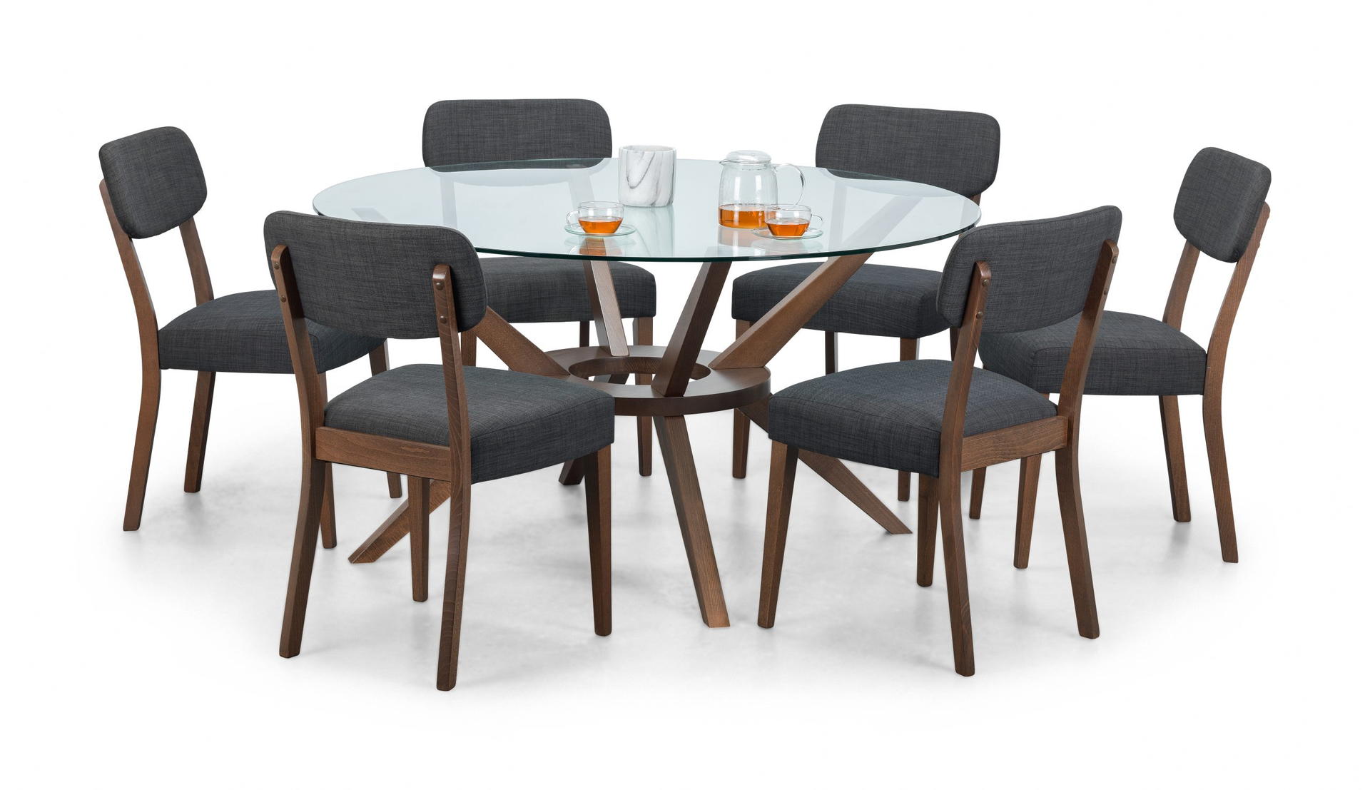 Offering hints of retro and Scandinavian designs, the Farringdon Dining Chair brings a touch of mid-century sophistication through a fashionable combination of shapes and forms. Upholstered in a grey linen fabric, this dining chair features an open back seat finished with a rich walnut frame. Perfect match for the Farringdon Round Dining Table.