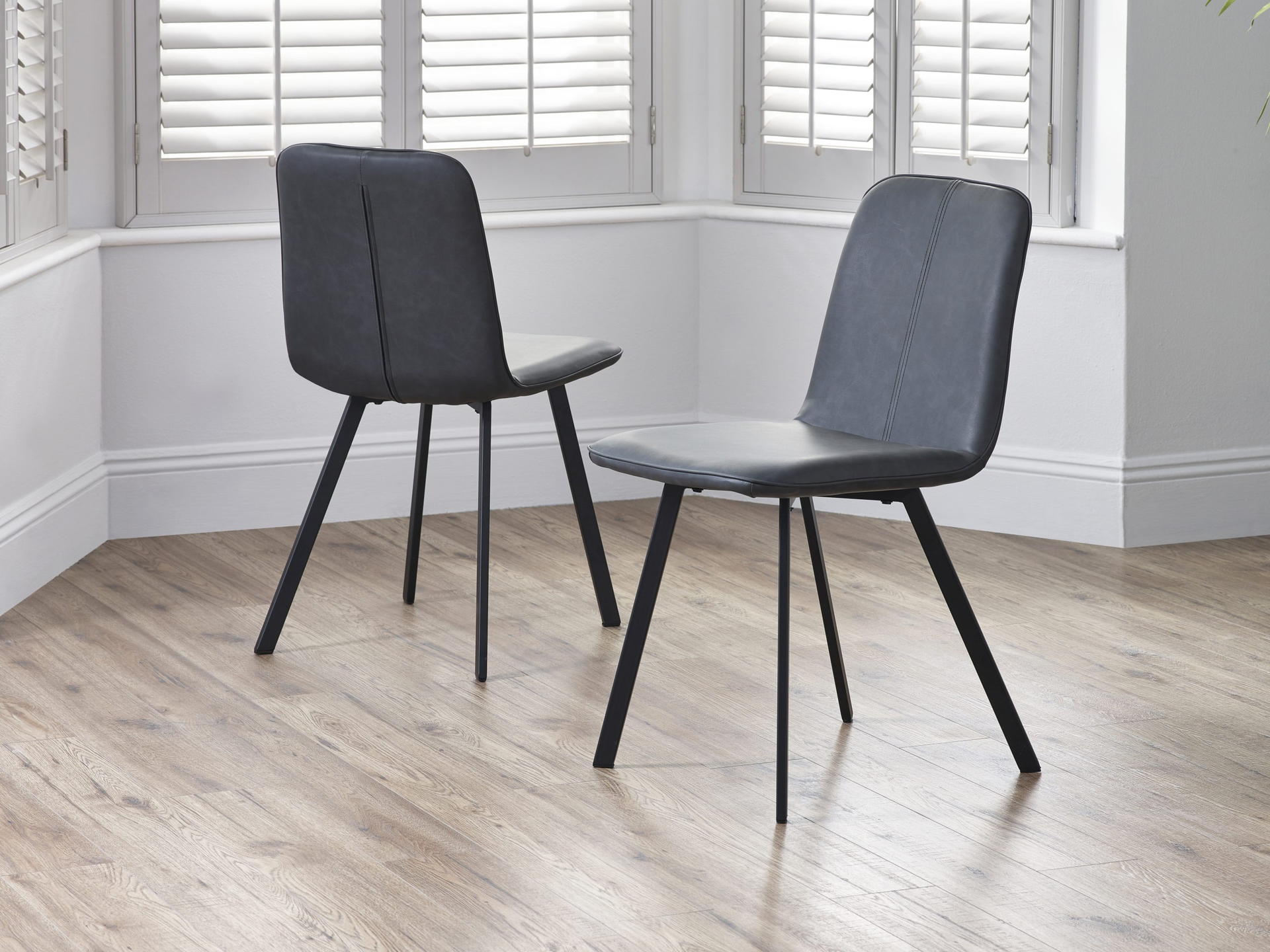 The Goya chairs are designed minimalistically. Finished in faux leather with a curved design, this look is great for differing interior styles from minimalist, to more industrial sets. Available in gorgeous antique black or brown options.