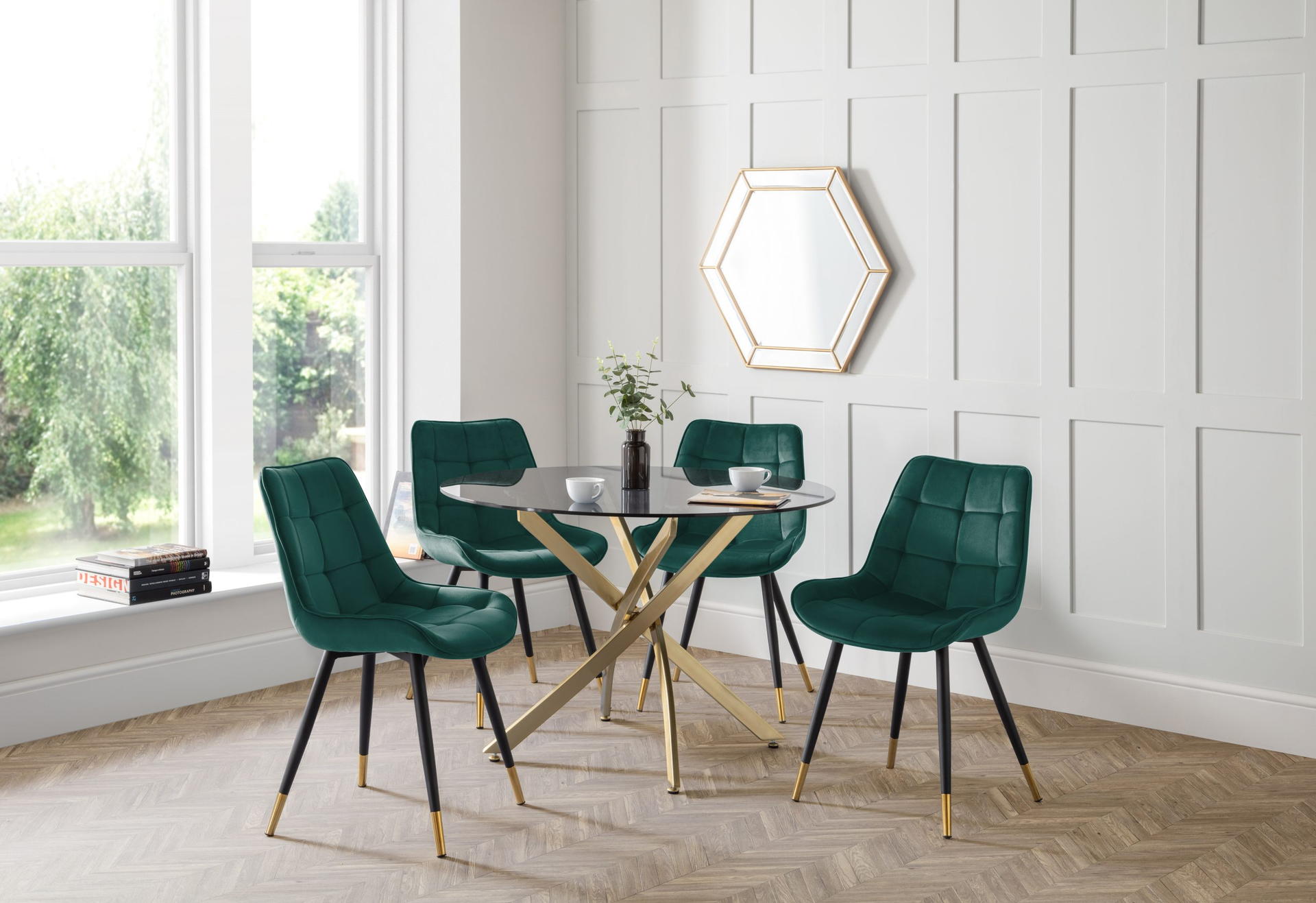 The Hadid exudes elegance and class. Crafted from soft touch velvet in a contemporary and modern shape, this chair is suited to various tastes and styles. With matte black legs that are tipped with brushed gold – this piece is timeless and classic, fitting perfectly in any home.