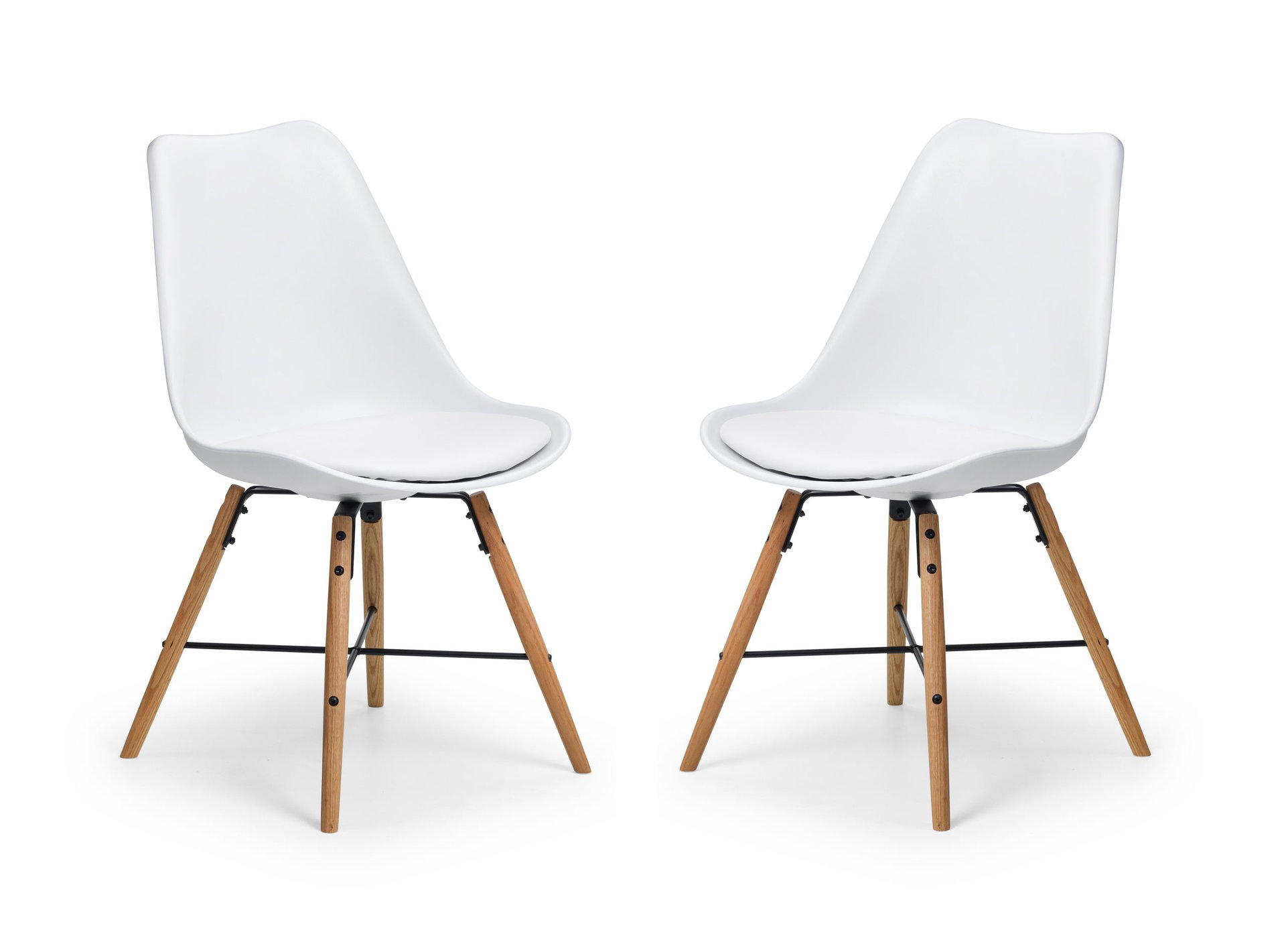 The Kari Dining Chair features a curved design that conforms to the natural curve of the spine, paired with a high-quality padded seat allowing you to reach maximum comfort. Featuring a white, easily-cleaned seat and oak effect legs, with an steel cross bar giving this chair a modern industrial feel. Available in three colour options.
