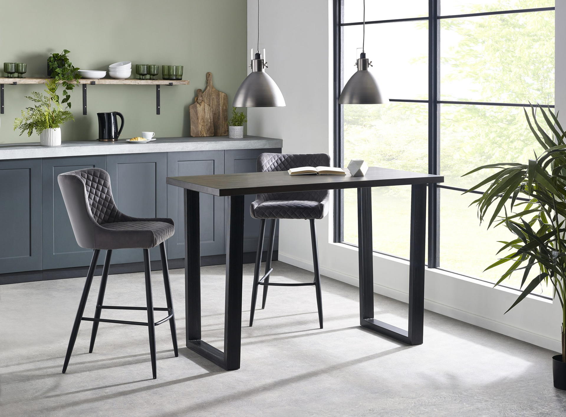 Pair with a bright coloured velvet bar stool for a modern look, or some industrial leather bar stools for a more retro look.