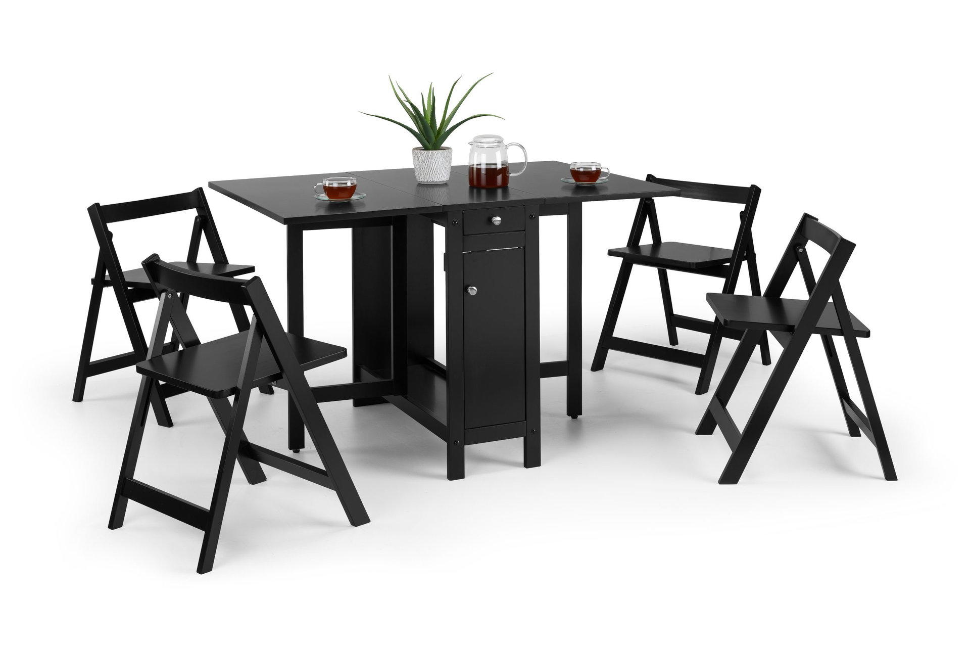 A great space saving alternative to a traditional dining set, with four fold away chairs that store inside the table..