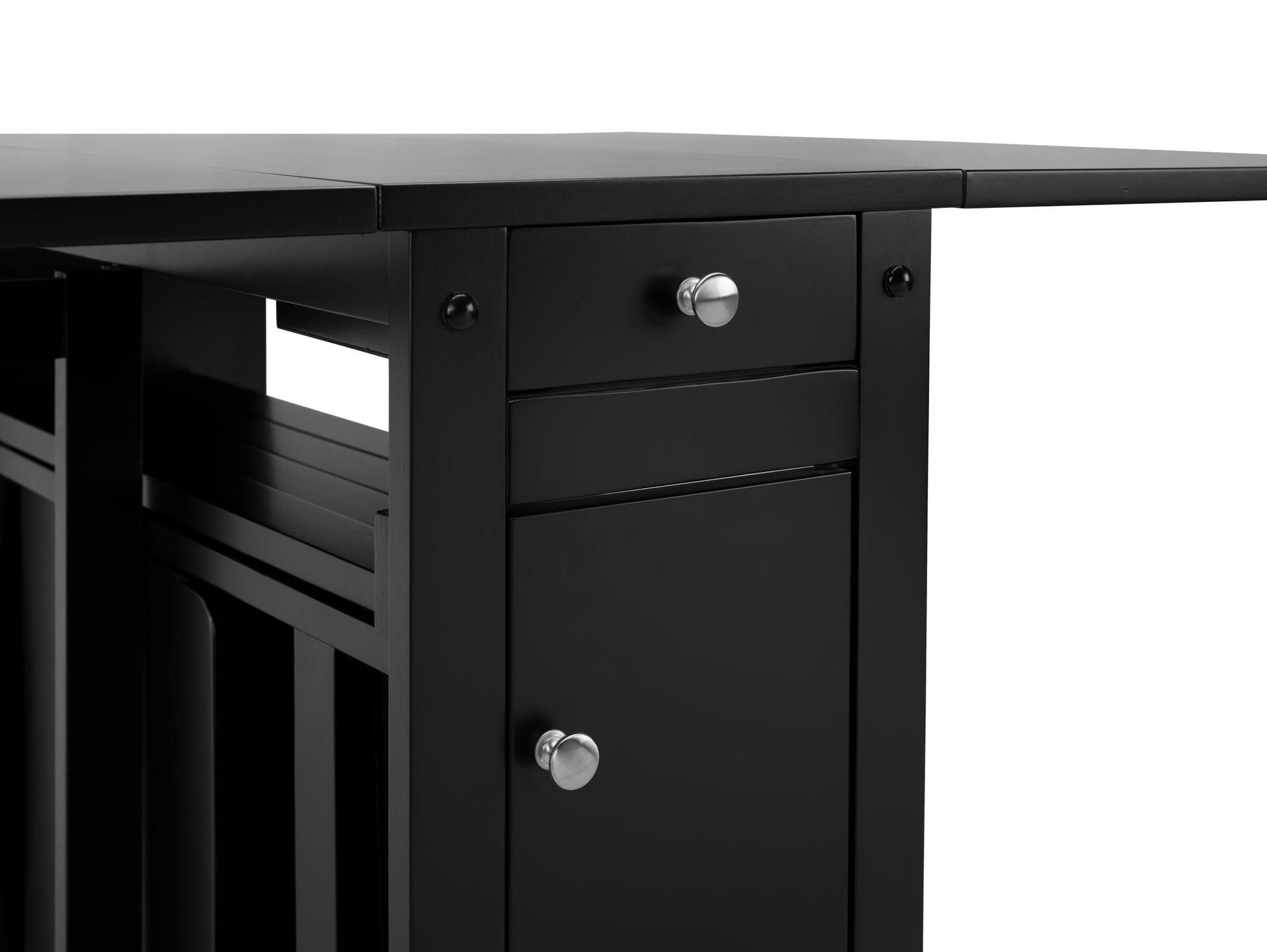 A neat and functional, space saving dining set where the chairs can be folded and stored Inside the table. This dining set is a timeless classic that features a integrated storage drawer, perfect for small spaces with less storage. Available in a white and natural finish, an all over light oak and a black finish.