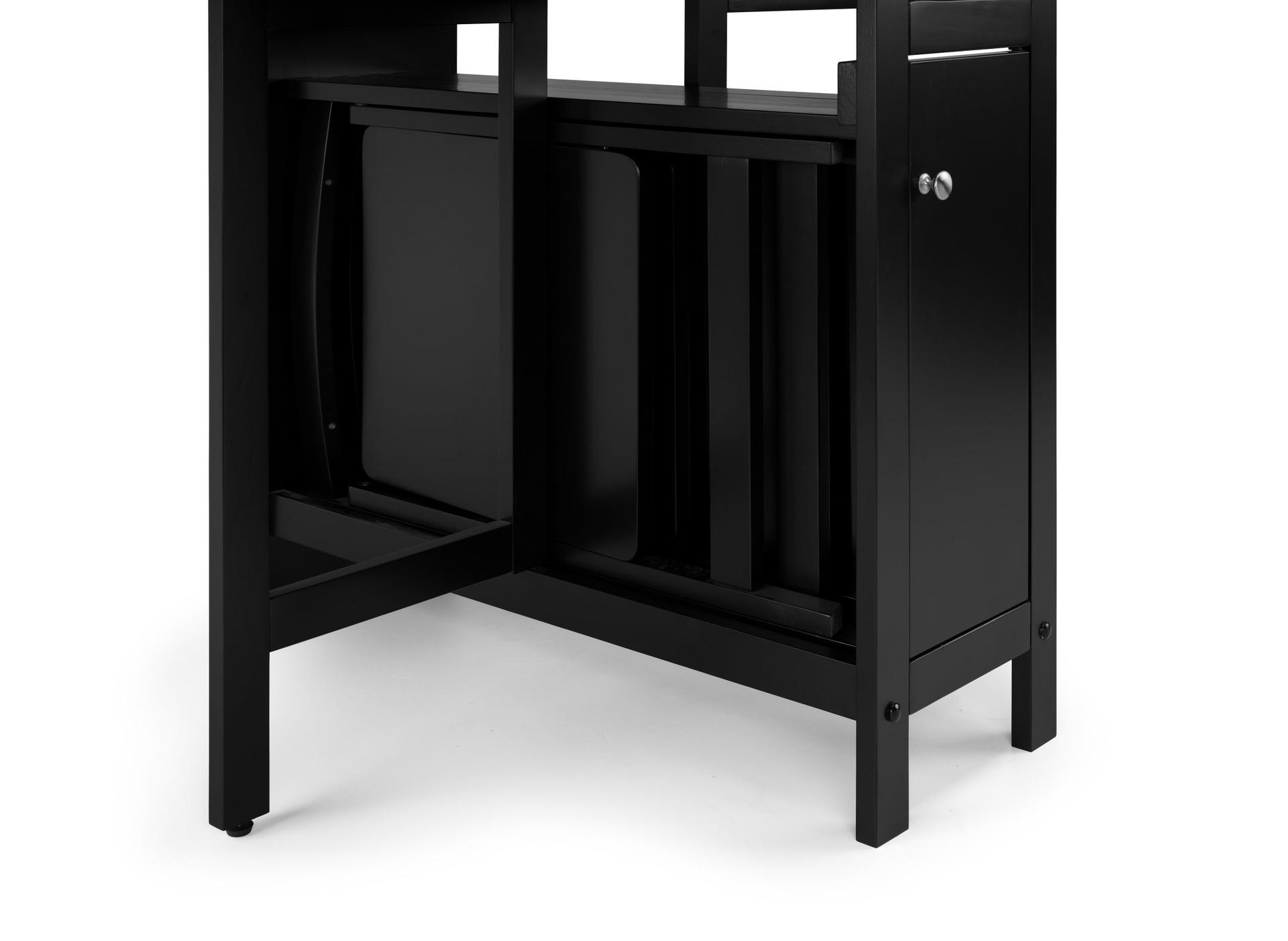 The set features a handy integrated storage drawer and is finished in a Black Colour Lacquered Finish..