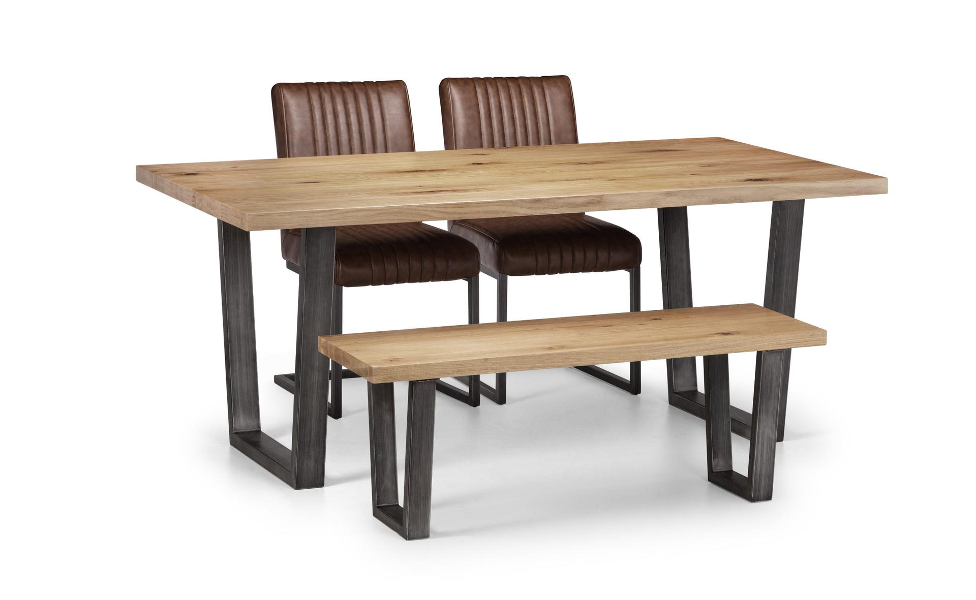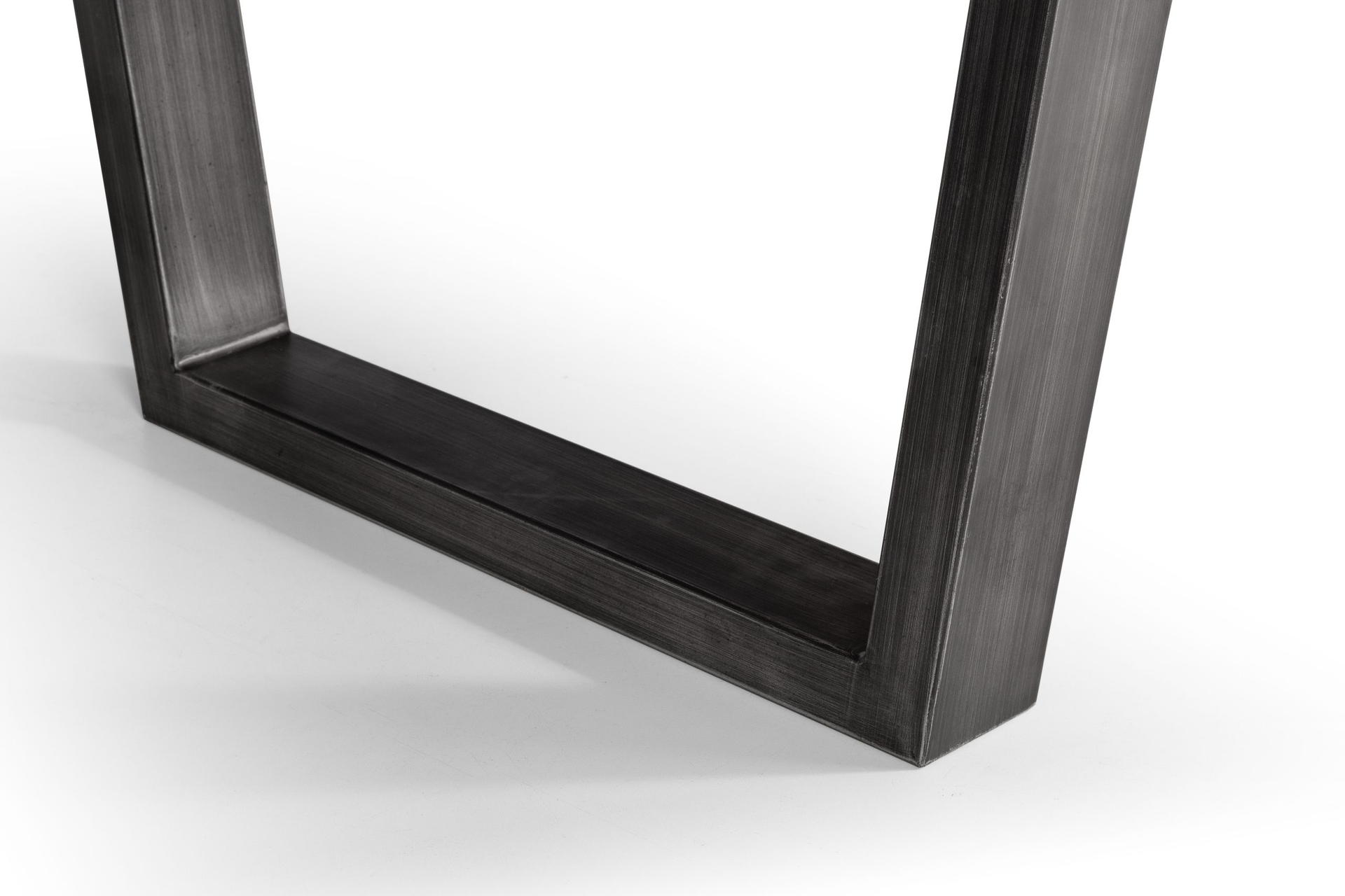 Featuring metal industrial trapeze style legs.
