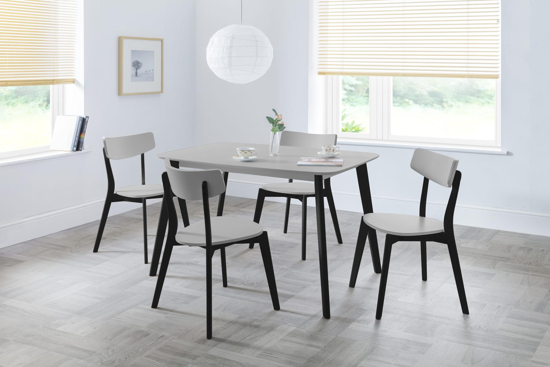 A timeless design reflecting the style of the 1950’s combined with modern, contemporary colours. The Casa dining table has a durable grey lacquered top with black legs. Crafted from solid Malaysian hardwood and MDF ensuring long lasting durability.
