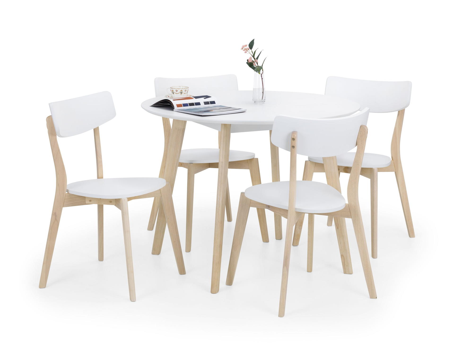 A timeless retro design reflecting the style of the 1950’s. The Casa round dining table has a durable white lacquered top with limed oak effect legs. Crafted from solid Malaysian hardwood and MDF ensuring long lasting durability.