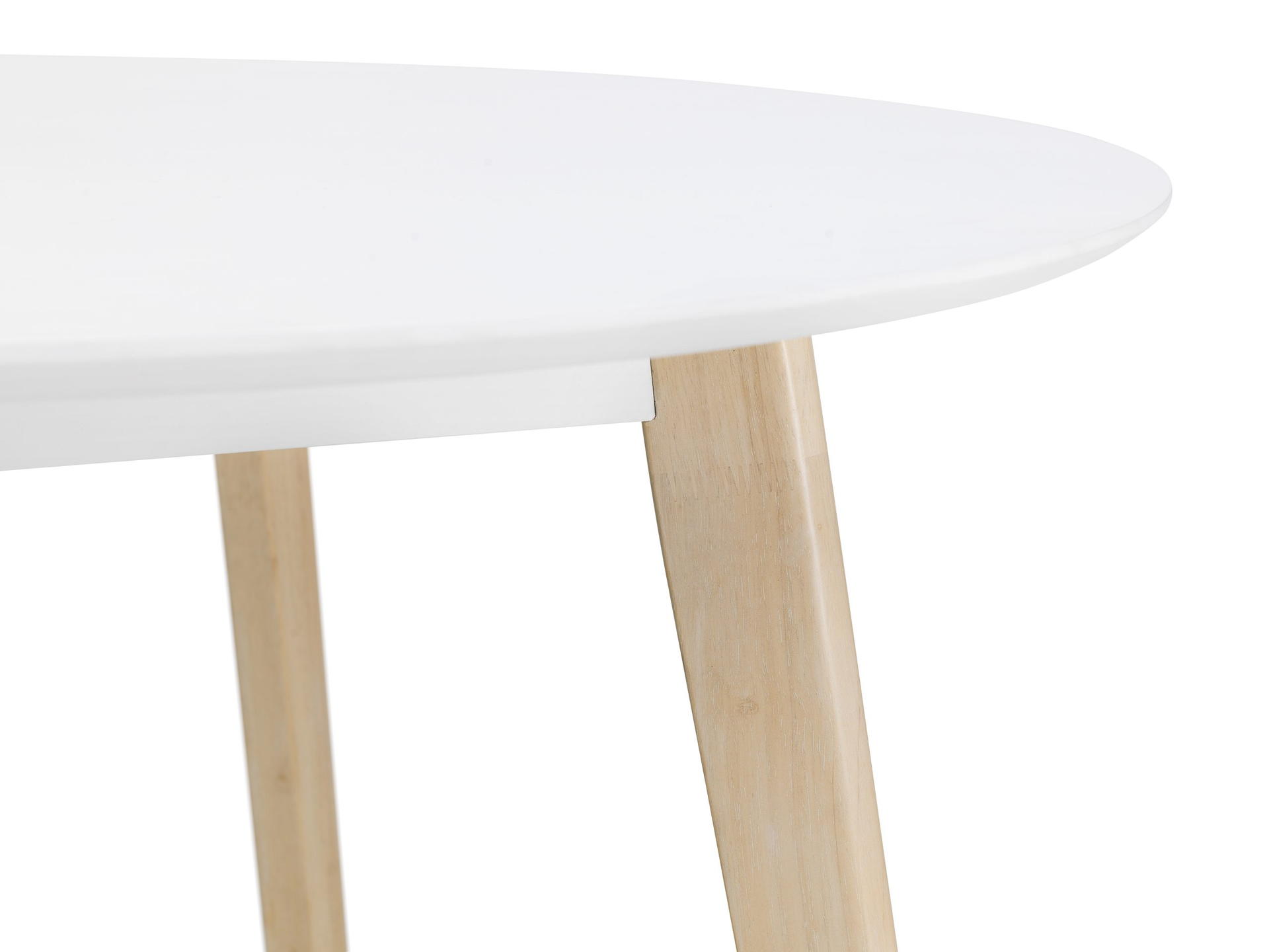 Durable matt white lacquered top with limed oak effect solid wood legs..