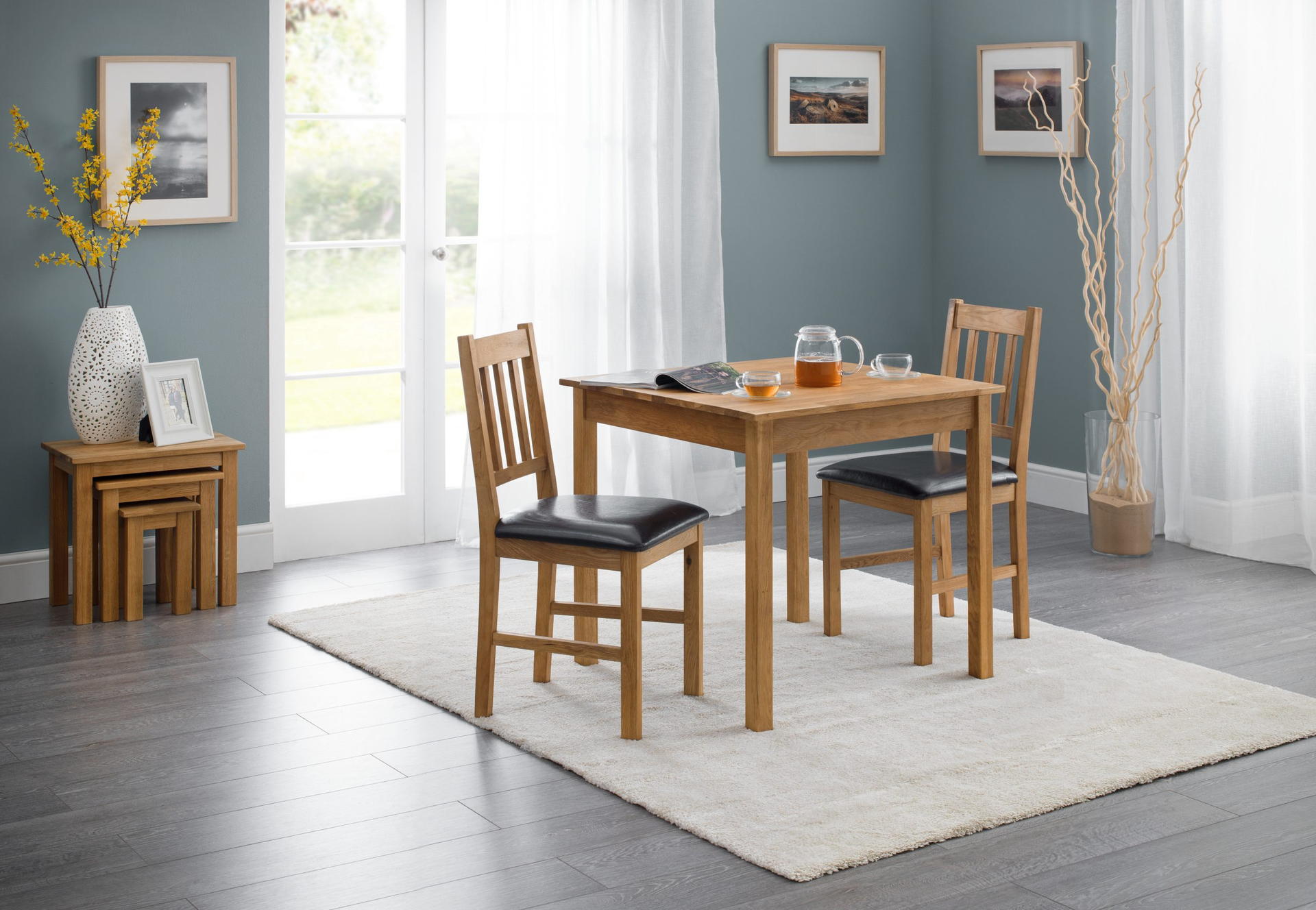 This compact solid oak dining table in a rich oiled finish, is suitable for small kitchen diners. This classic, timeless design adds extra room for you to enjoy your daily meals.