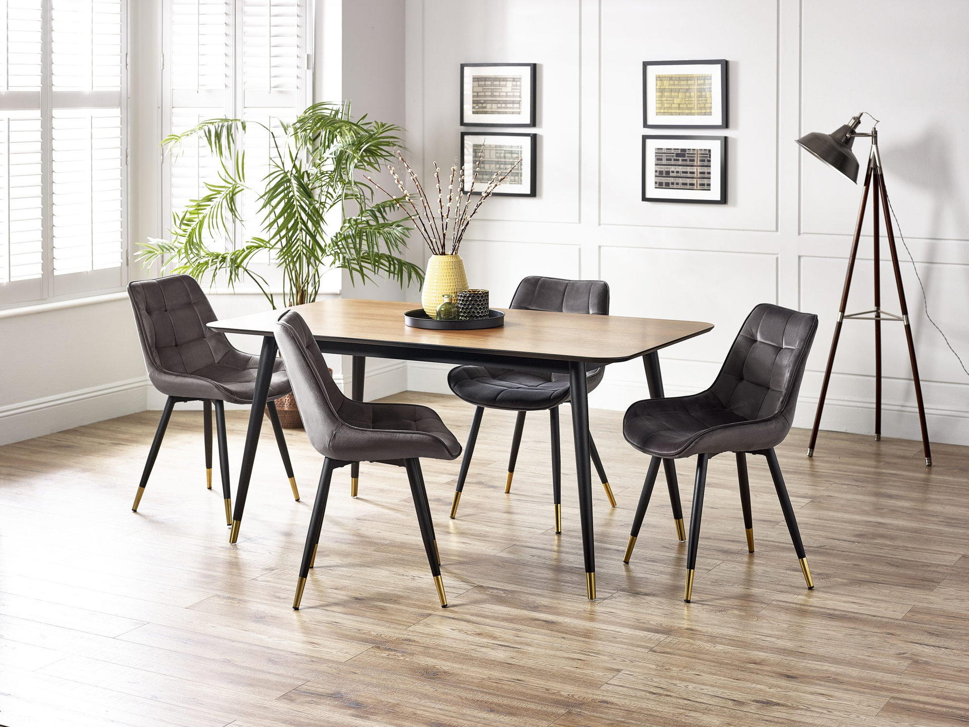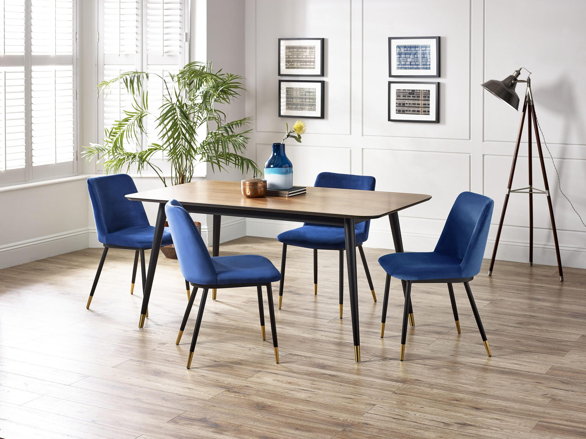 The Findlay collection combines retro design elements with a modern twist. With a walnut finish and brass tipped legs – this collection will uplift an eclectic range of décor styles. This collection includes a rectangular dining table, square dining table, coffee table, lamp table, and media unit.