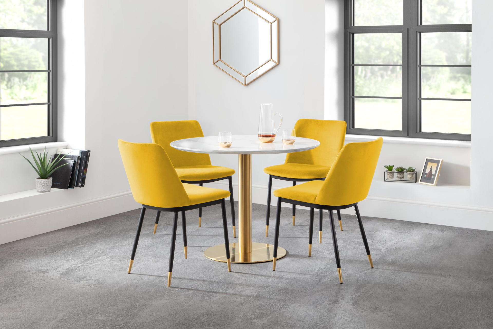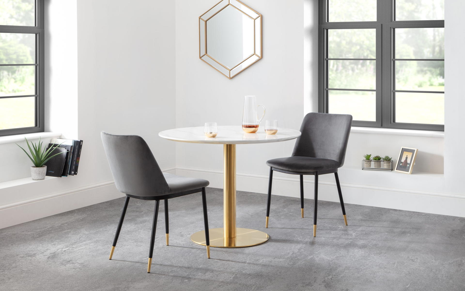 The Palermo round pedestal table is a contemporary, modern, and sleek piece which will complete your dining experience. With an easy-to-wipe, crisp marble top and sturdy gold base, it oozes sophistication whilst being functional and classic. Whether you’re having drinks with a friend, or a relaxed lunch with your loved ones, the Palermo is a beautiful addition to any home.