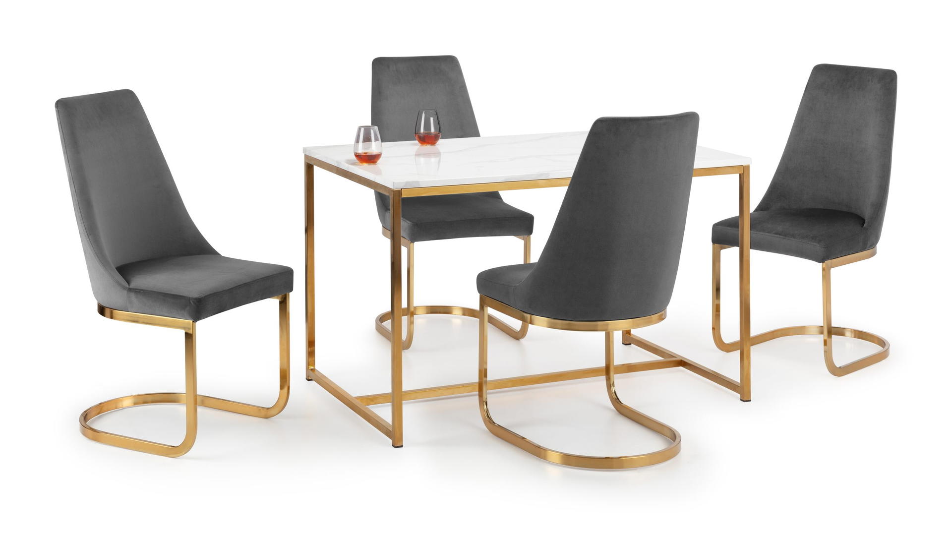 Scala is a sleek dining table with chic marble effect top on a well-crafted gold coloured, stainless steel frame. It has a timeless Italian design that fits well with a wide range of decorative styles. Part of the Julian Bowen Scala Dining and Occasional furniture range.