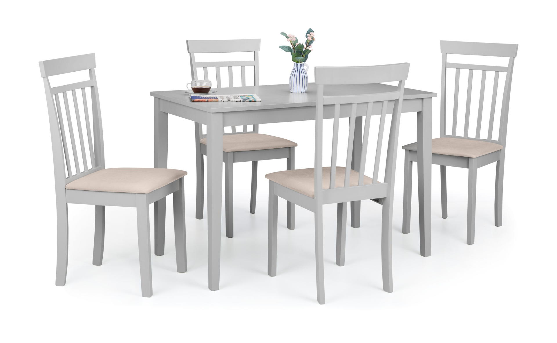 A compact 4-place setting design in durable Grey lacquered finish..