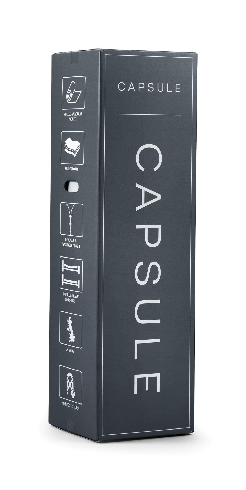 The Capsule Memory Reflex Roll-Up features a 25mm memory foam that moulds to the shape of your body – supporting your back and allowing you to sleep in comfort. The Tencel quilted cover uses renewable materials which are gentle on the skin and environmentally friendly. The material composition of this mattress helps to regulate body temperature – keeping your body cool and dry through the night. The Reflex Roll-Up range is packed up and rolled for easy set-up and comes in our recyclable branded Capsule box: meaning less hassle for you, and more relaxing. Available in sizes: 3ft and 4ft6.
