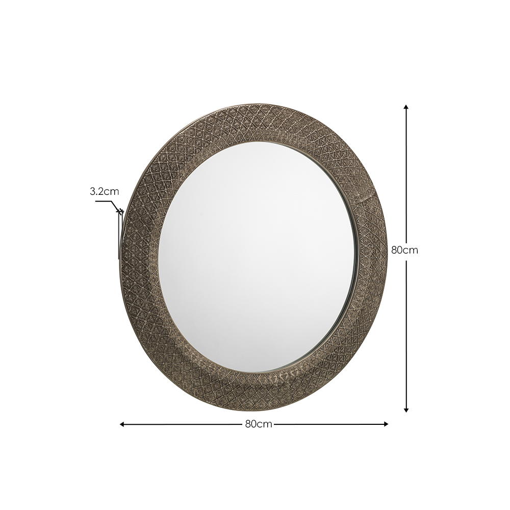 Taking inspiration from the sun-soaked Morocco, the Cadence mirror features an intricate design upon a stunning pewter frame. Complimentary of modern and traditional décor, this round mirror is ideal as a charming feature piece. Available in a small 60 cm diameter, and a large 80 cm diameter.