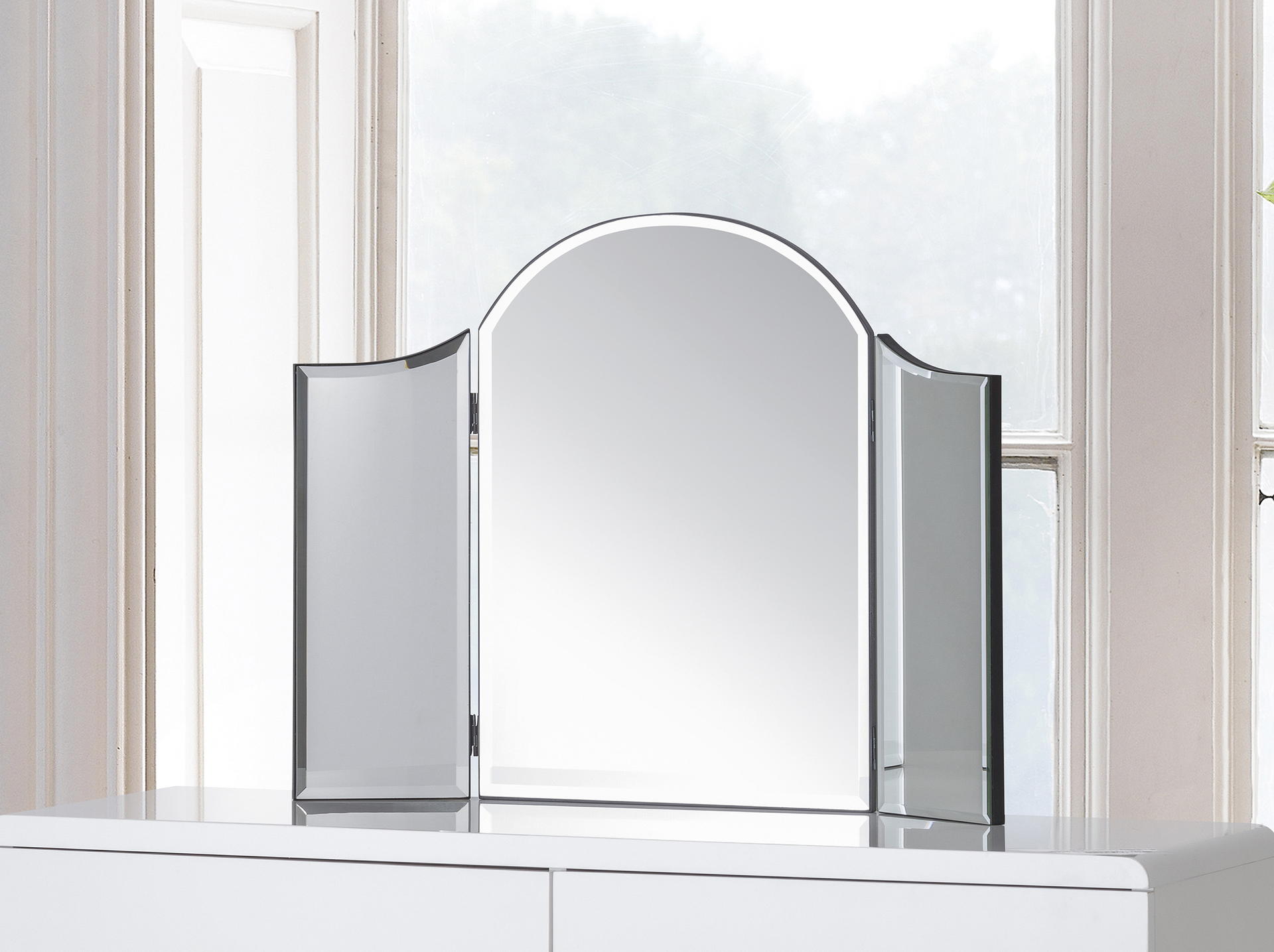 An elegantly styled free standing dressing-table mirror whose subtle curved design adds a touch of glamour to any bedroom.