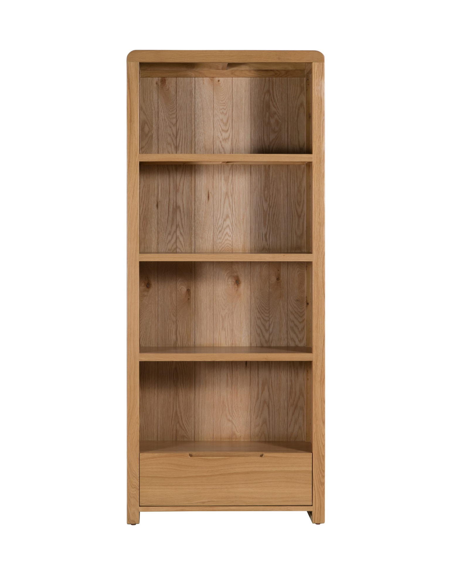 Crafted from solid oak and oak veneers, the Curve combines clean lines with a gentle curved edging, adding a modern, retro feel to any dining area. The Curve Tall Bookcase offers four shelves with ample space, along with a large drawer. Part of the Julian Bowen Curve Dining and Occasional Collection