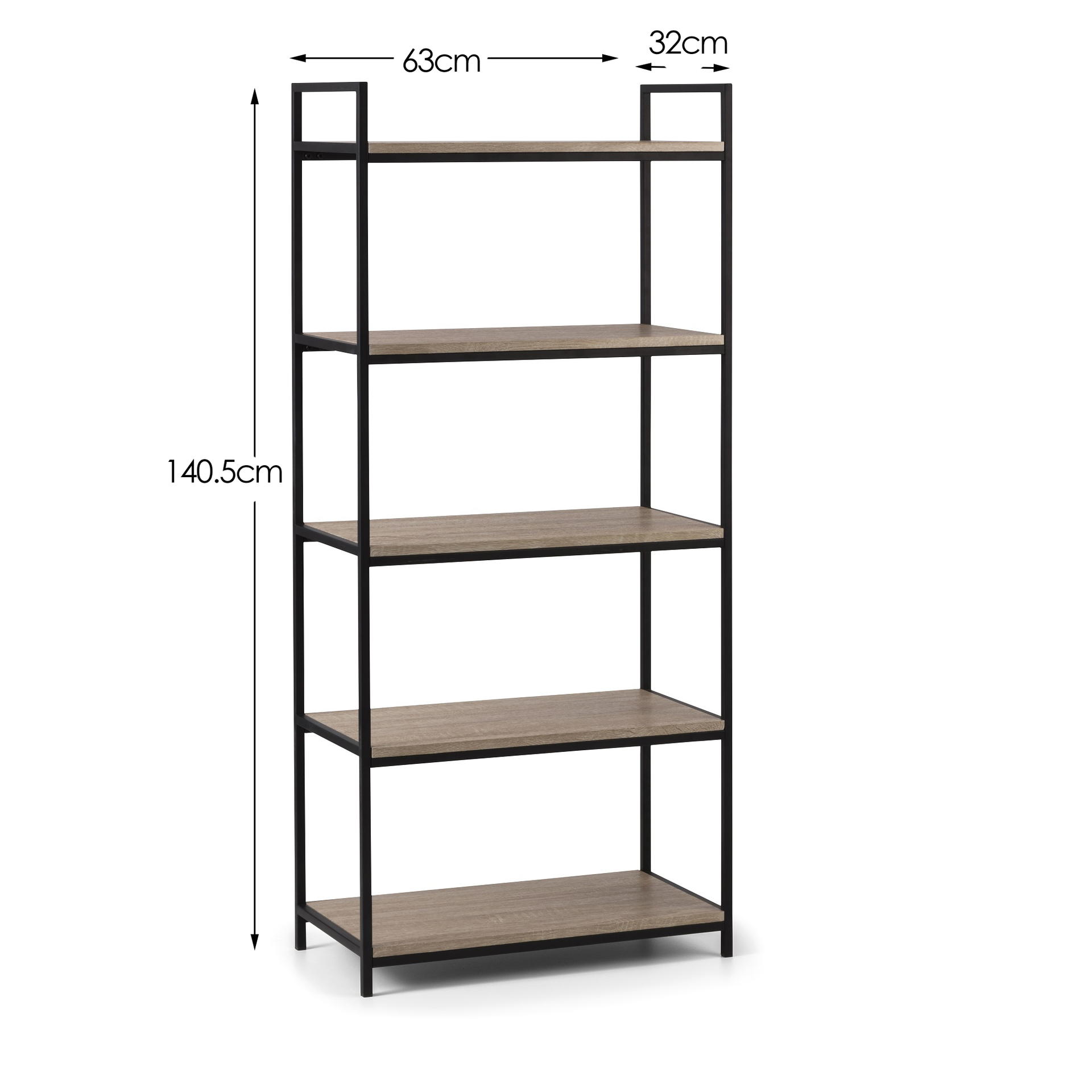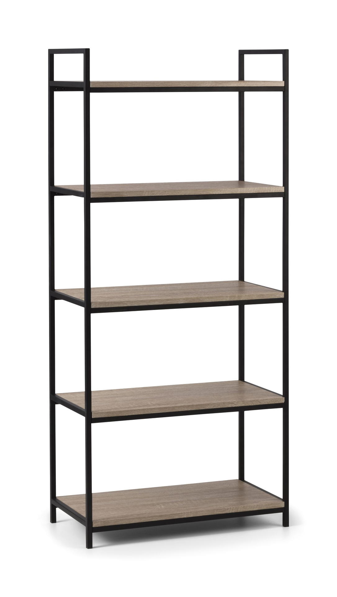 A cool, modern tall bookcase designed to add a contemporary touch to any home or work place. Its simple clean lines, delineated by a subtle, black coated metal frame are complemented perfectly by a warm, Sonoma oak foil, to create a very stylish and sleek product.